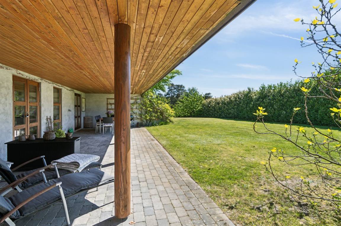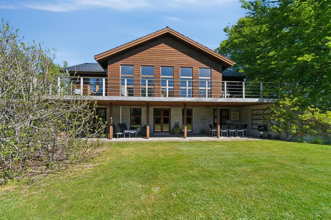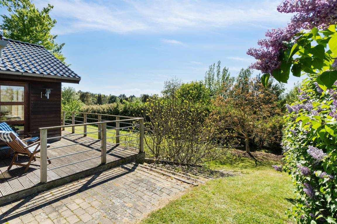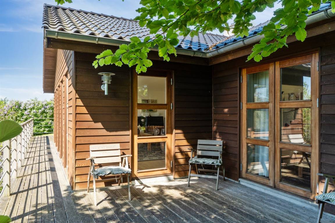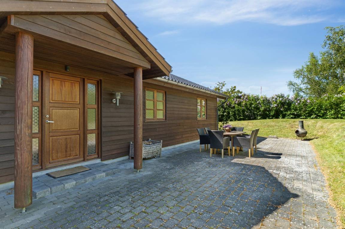 DraußenDie Ferienunterkunft liegt auf einem 1500 m² großen Gartengrundstück. Die Entfernung zum Fjord beträgt 560 m. Die nächste Einkaufsmöglichkeit liegt 800 m entfernt. In einem Abstand von 12000 m gibt es einen Golfplatz. Es stehen sowohl offene als auch 60 m² überdachte Terrassen zur Verfügung. Parkplatz auf dem Grundstück.