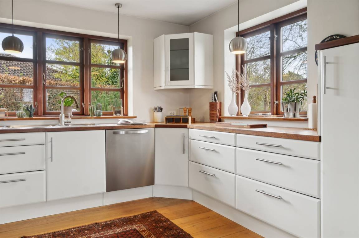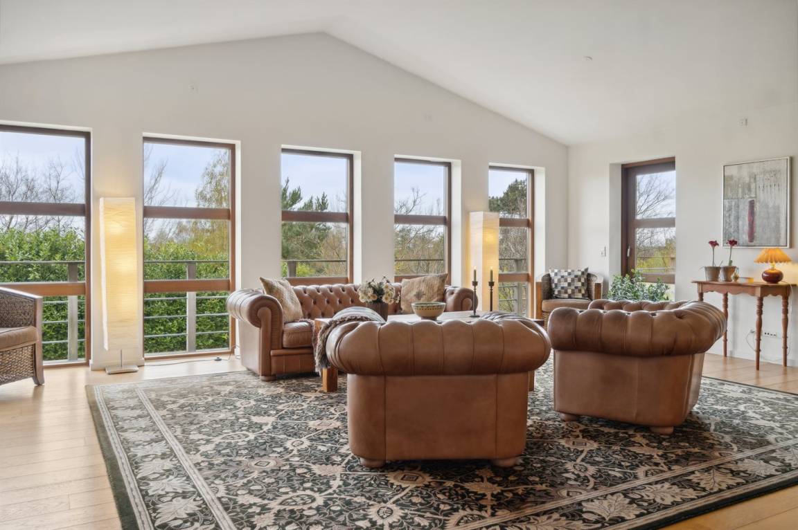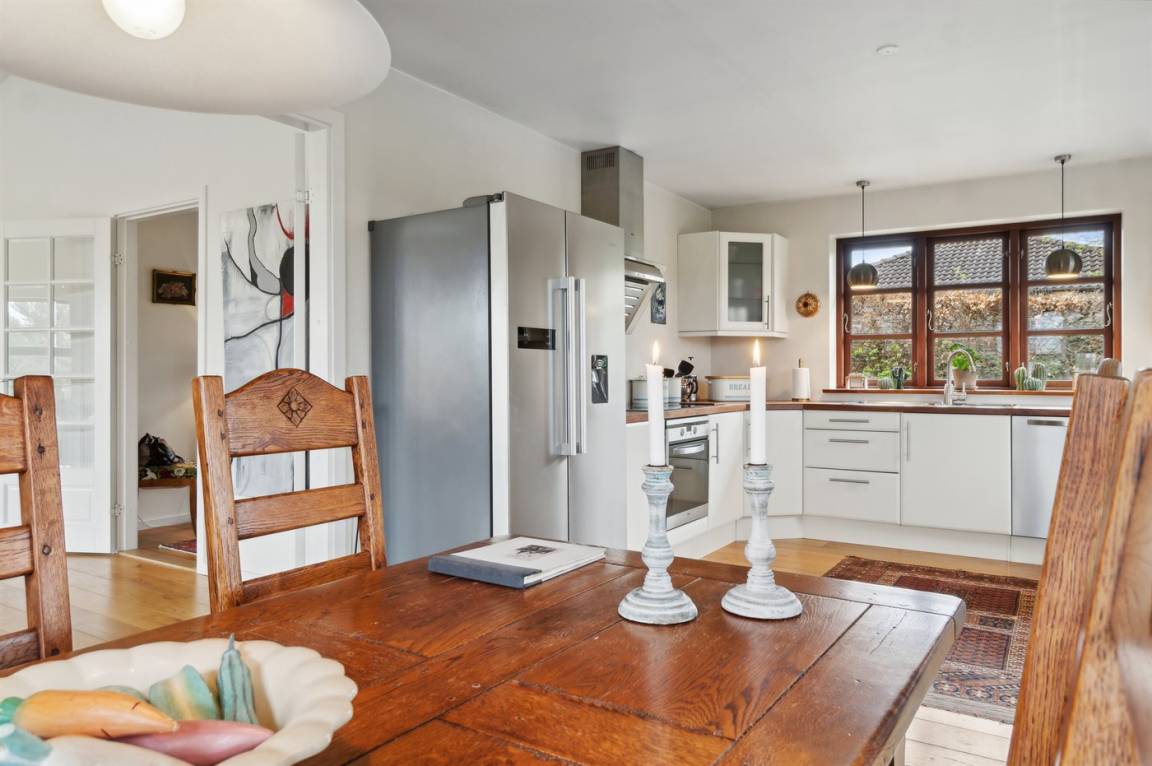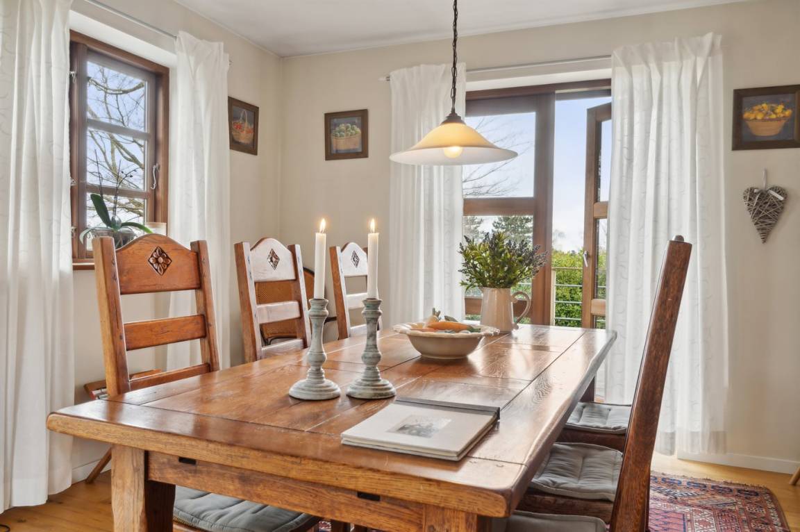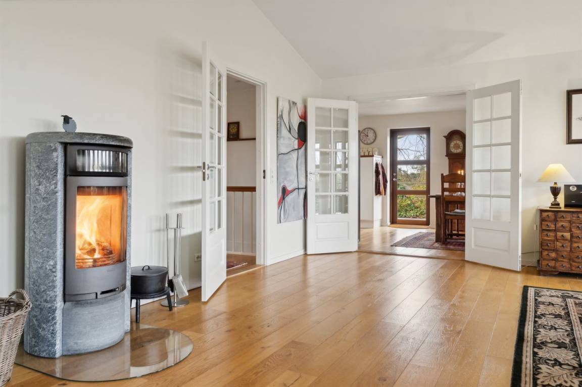 DraußenDie Ferienunterkunft liegt auf einem 1500 m² großen Gartengrundstück. Die Entfernung zum Fjord beträgt 560 m. Die nächste Einkaufsmöglichkeit liegt 800 m entfernt. In einem Abstand von 12000 m gibt es einen Golfplatz. Es stehen sowohl offene als auch 60 m² überdachte Terrassen zur Verfügung. Parkplatz auf dem Grundstück.