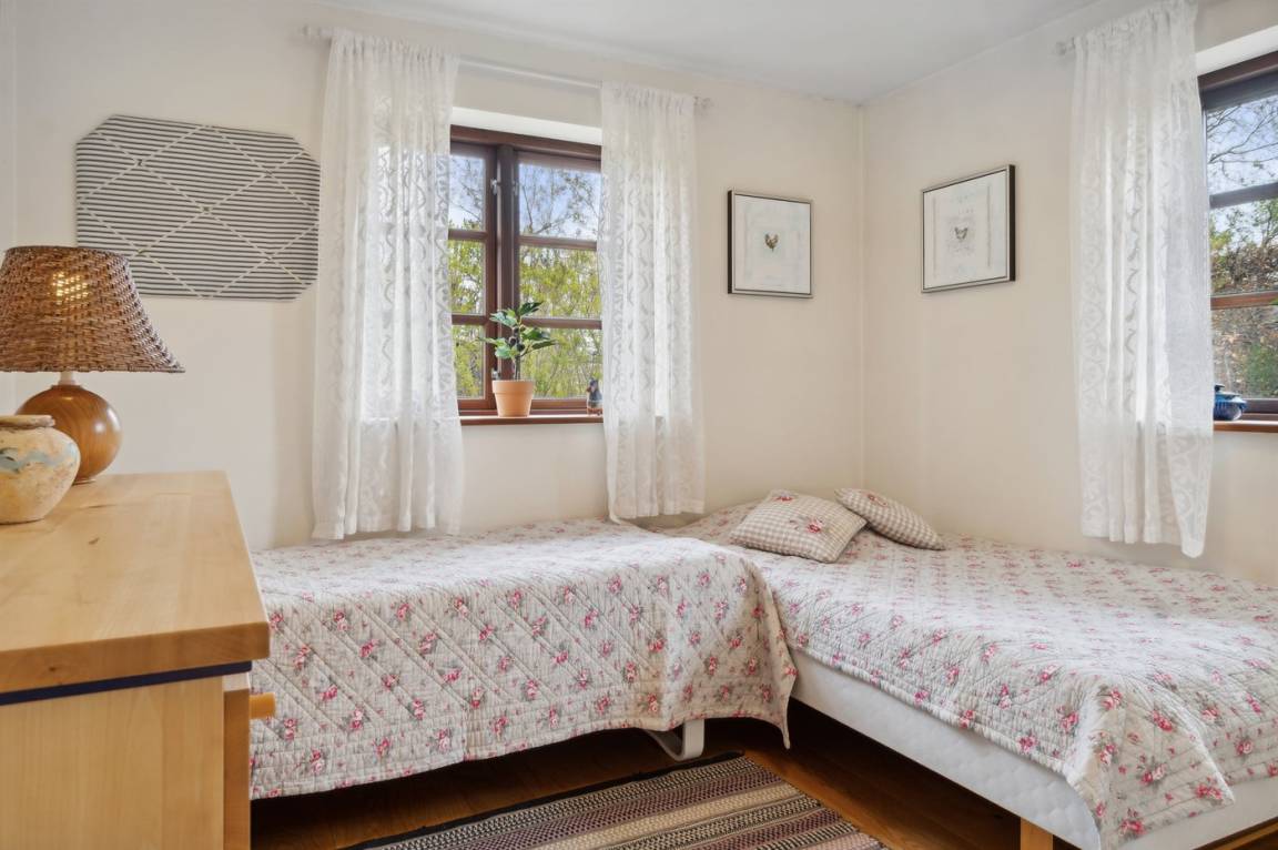 Großes und geräumiges Ferienhaus für die große Familie. Das Ferienhaus ist in zwei Etagen gebaut und von großen Terrassenflächen und einem schönen Garten umgeben. Es gibt 4 Schlafzimmer im Haus - 2 auf jeder Etage - sowie auf jeder Etage ein Badezimmer, eines davon mit Badewanne.
