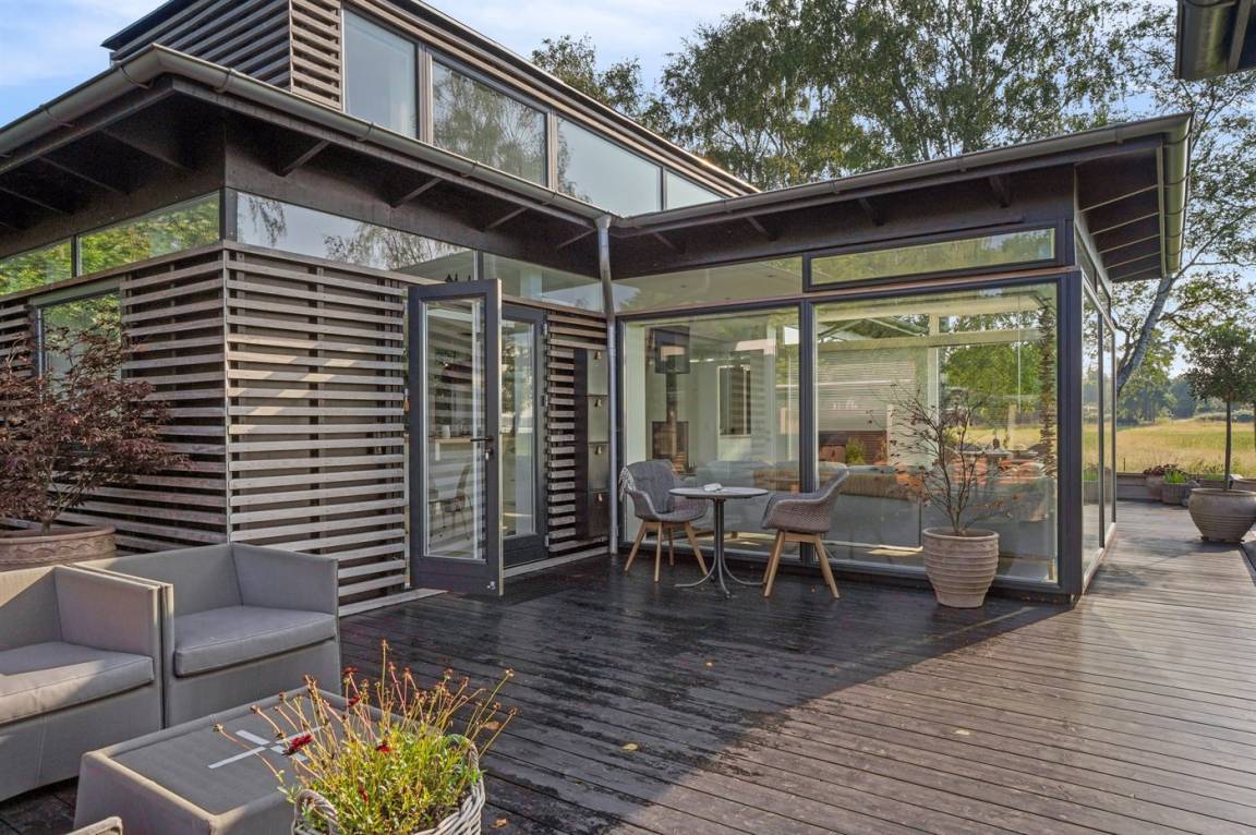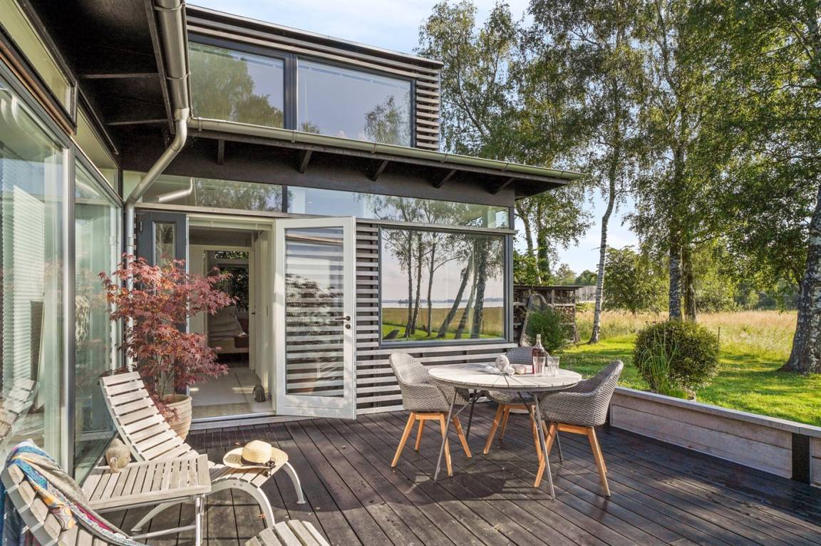 In der naturschönen Gegend Tørslev Hage, direkt am Roskilde-Fjord, liegt dieses exklusive, architektengezeichnete Ferienhaus. Es wurde aus natürlichen Materialien gebaut und verfügt über große Fensterflächen, die Licht und Ausblick tief ins Haus holen. Die Einrichtung ist stilvoll und nordisch – mit hoher Decke und einer ruhigen, durchdachten Atmosphäre.
