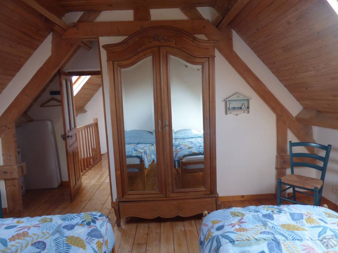 Haus in der Nähe des Eigentümers. Im Erdgeschoss: Wohnzimmer mit Kamin (erstes Feuer vorbereitet und angeboten). Fernseher. Offene Küche, ausgestattet und ausgestattet (Cerankochfeld, Elektroherd, Mikrowelle, Geschirrspüler, Gefrierfach). Im 1. Stock: Schlafzimmer 1 (1 Bett 160x200). Duschraum (Dusche, Waschmaschine und Trockner). WC. Im 2. Stock: Schlafzimmer 2 (1 Bett 120x190). Schlafzimmer 3 (2 Betten 90x190). Babyausstattung auf Anfrage (Reisebett und Hochstuhl). Bettwäsche wird gestellt. Handtücher werden nicht gestellt. Reinigungsservice optional. Elektroheizung gegen Aufpreis (Zählerstand). Terrasse. Grill. Nicht eingezäunter Garten in der Nähe (30 m) mit Schaukel.