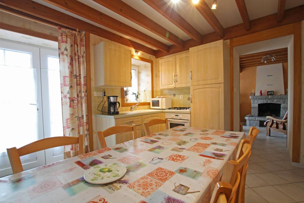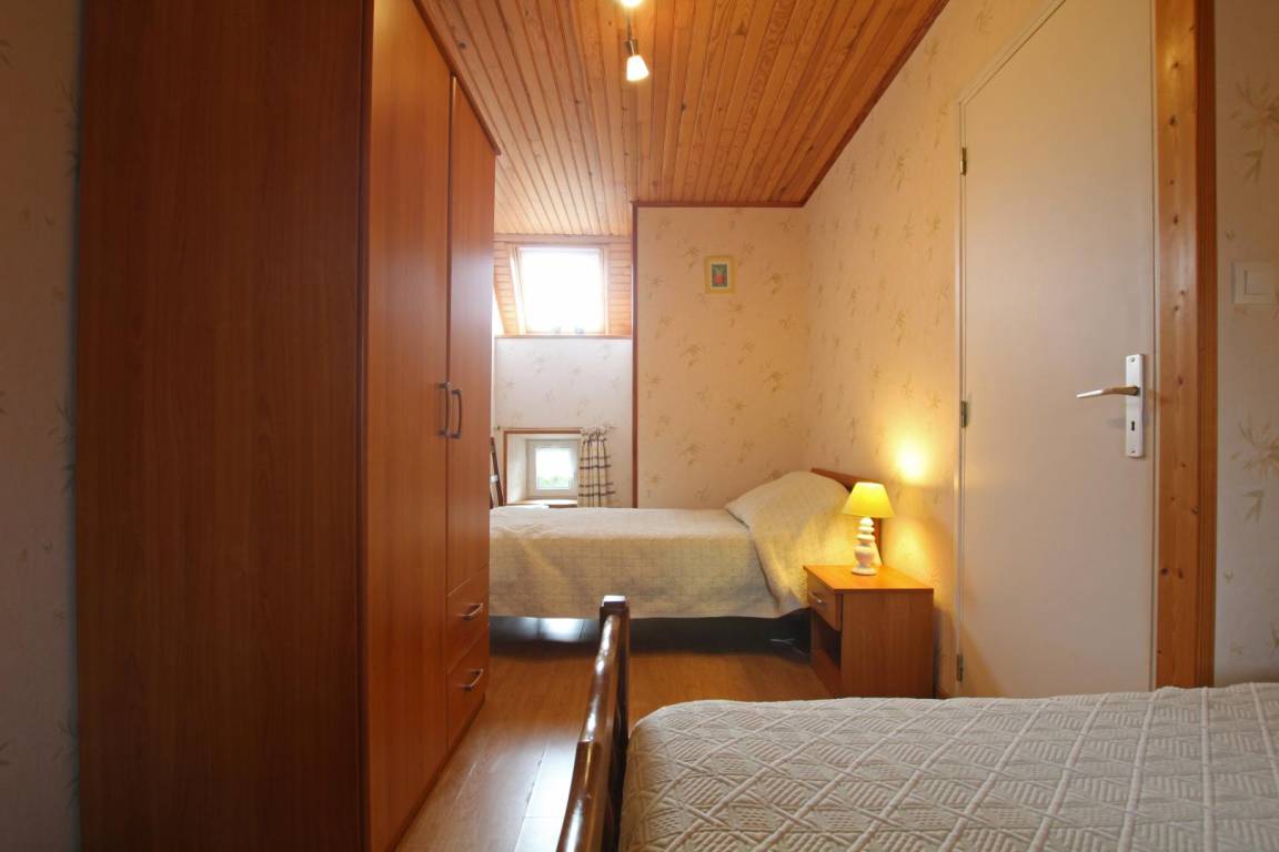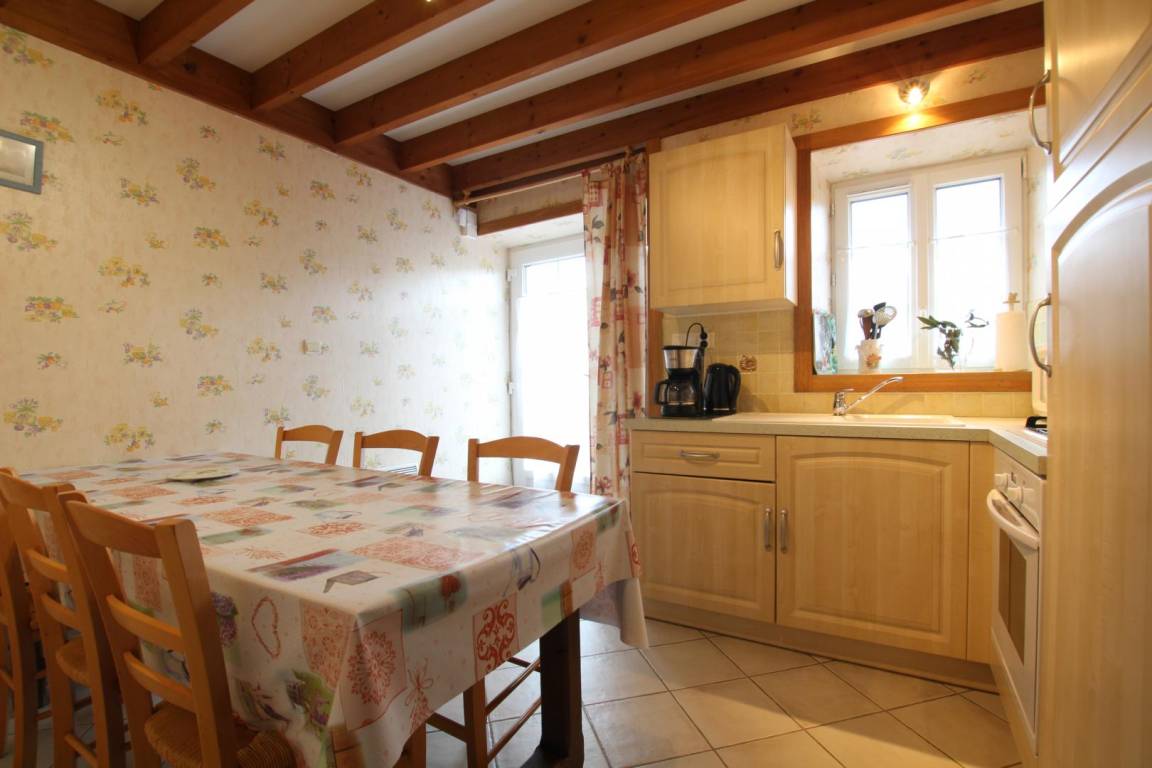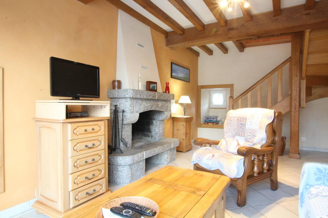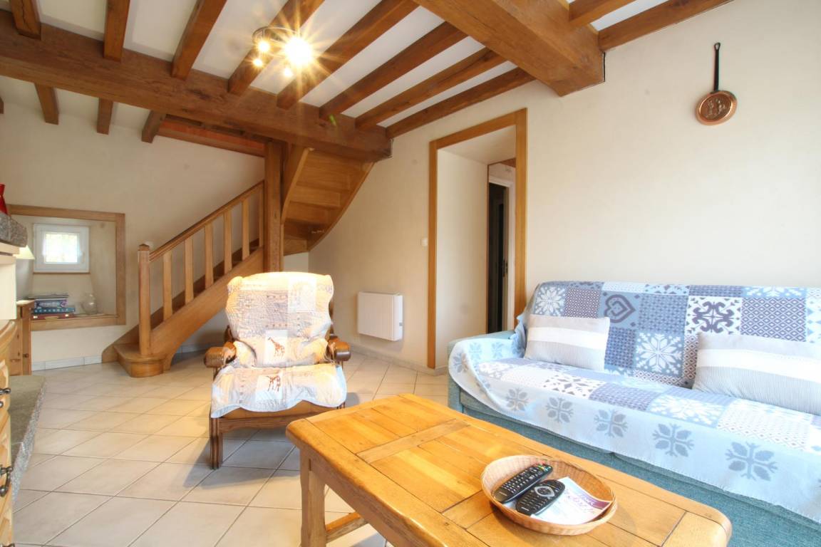 Doppelhaushälfte. Erdgeschoss: Küche, Wohnzimmer mit TV, Internetanschluss und Kamin (Holz nicht inklusive), Duschbad, WC. Obergeschoss: Schlafzimmer 1 (1 Doppelbett 140x190 cm und 1 Kinderbett), Schlafzimmer 2 (2 Einzelbetten 90x190 cm). Hochstuhl auf Anfrage. Waschmaschine. Elektrische Heizung (gegen Gebühr). Bettwäscheverleih. Reinigungsservice (gegen Gebühr). Privater, umzäunter Innenhof. Gartenmöbel. Grill.