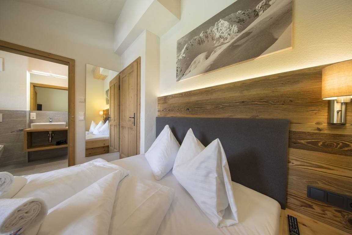 Dieses stilvolle Apartment bietet auf 72 m² Platz für bis zu 6 Personen (auf Anfrage + 2 weitere Schlafplätze) und überzeugt mit seiner Lage direkt an der Skipiste – perfekt für Skifahrer, Familien und Genießer. Drei gemütliche Schlafzimmer mit Doppelbett, drei moderne Badezimmer – eines davon mit Infrarotkabine – sowie ein offener Wohnbereich mit Kamin und Sichtfenster schaffen eine exklusive Wohlfühlatmosphäre.