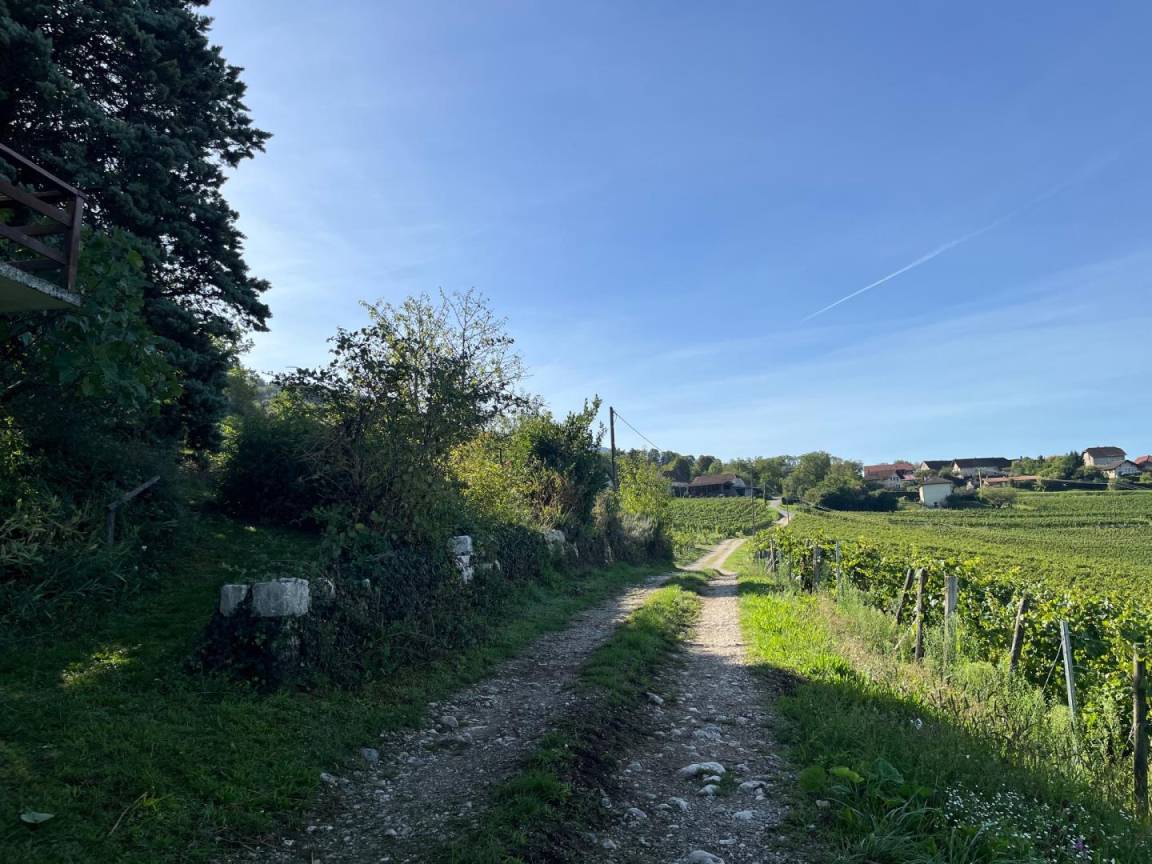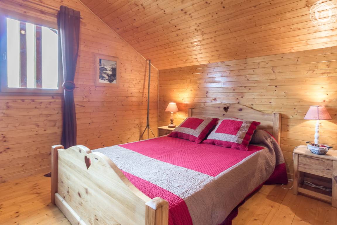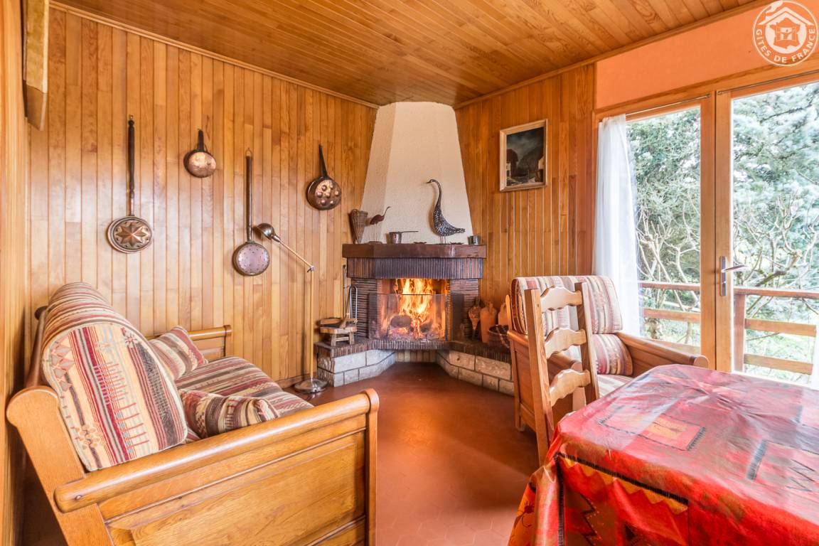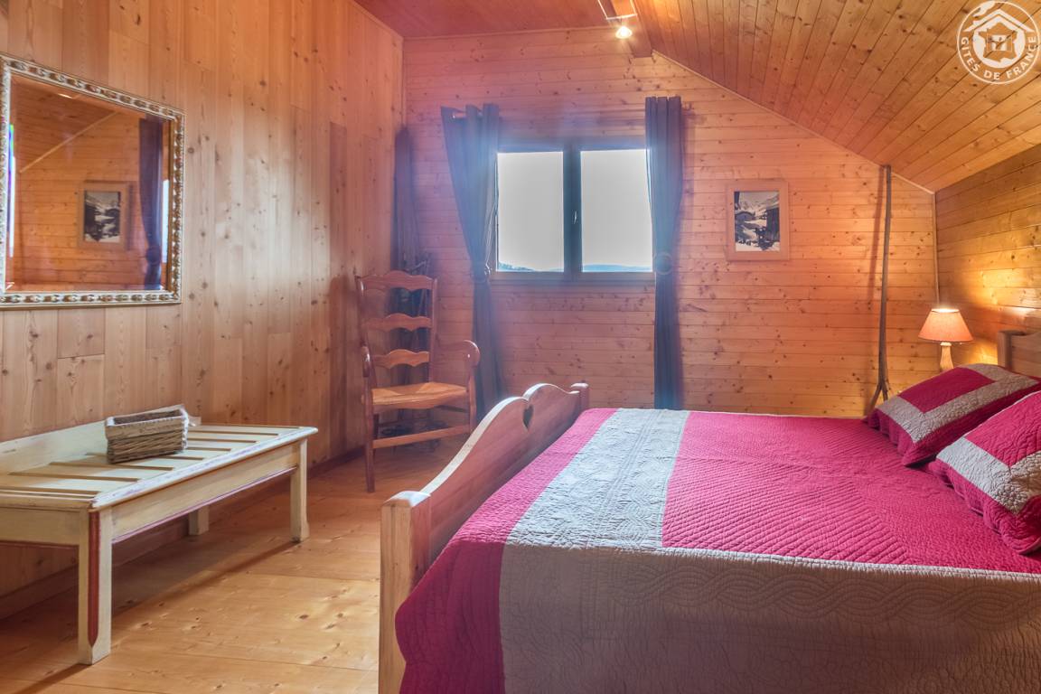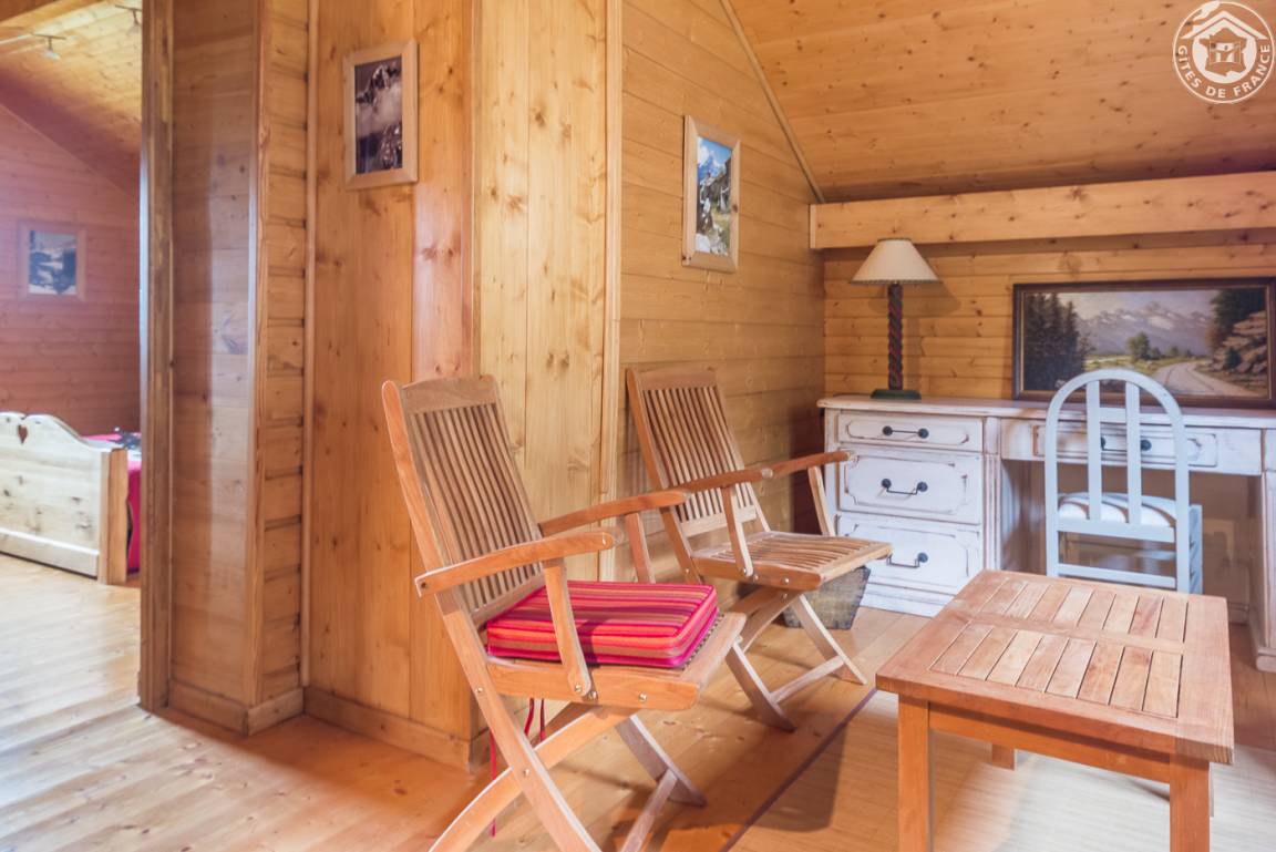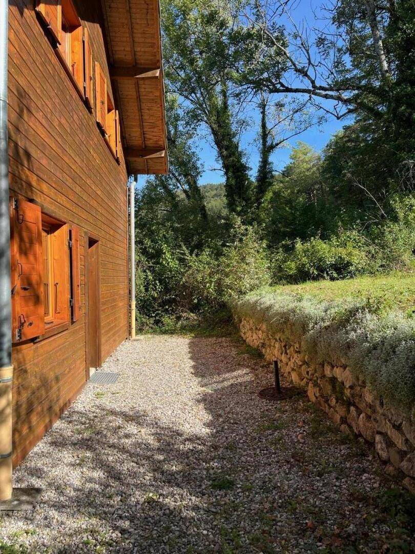 Individuelles Chalet auf 2 Ebenen (Zugang von außen). 1. Etage: Wohnzimmer, kleine Küche, 1 Schlafzimmer (1 Doppelbett), Badezimmer (Hufbad mit WC). 2. Etage: Entspannungsbereich im Zwischengeschoss, 2 Schlafzimmer (2 Doppelbetten). Doppelbalkon + Terrasse + sanft abfallendes Grundstück. Zufahrt über steinigen Weg über 200m. Landschaftssee St. Jean de Chevelu 7 km. Strände + Segeln Lake Bourget 14 km.