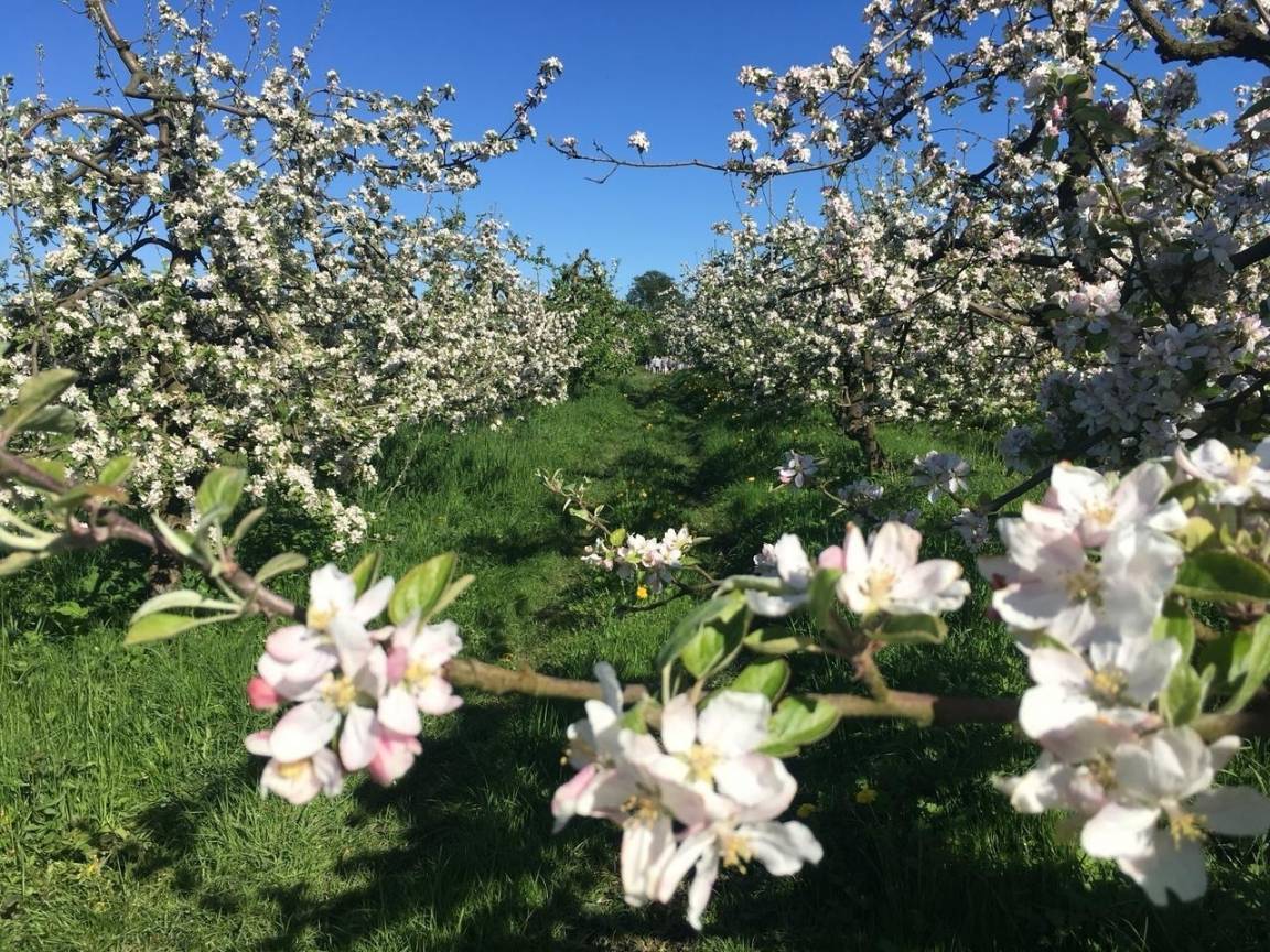 Der Eulenhof liegt inmitten zweier Kirschplantagen und bietet eine unvergleichbare Ruhe .