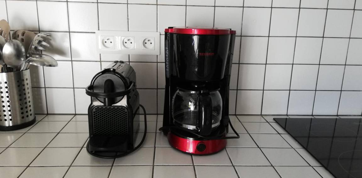 Ölzentralheizung und Kaminofen im Wohnzimmer.