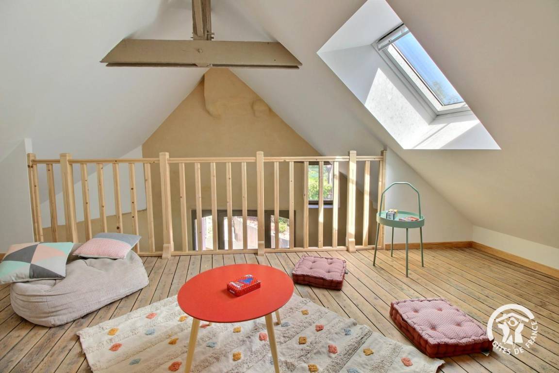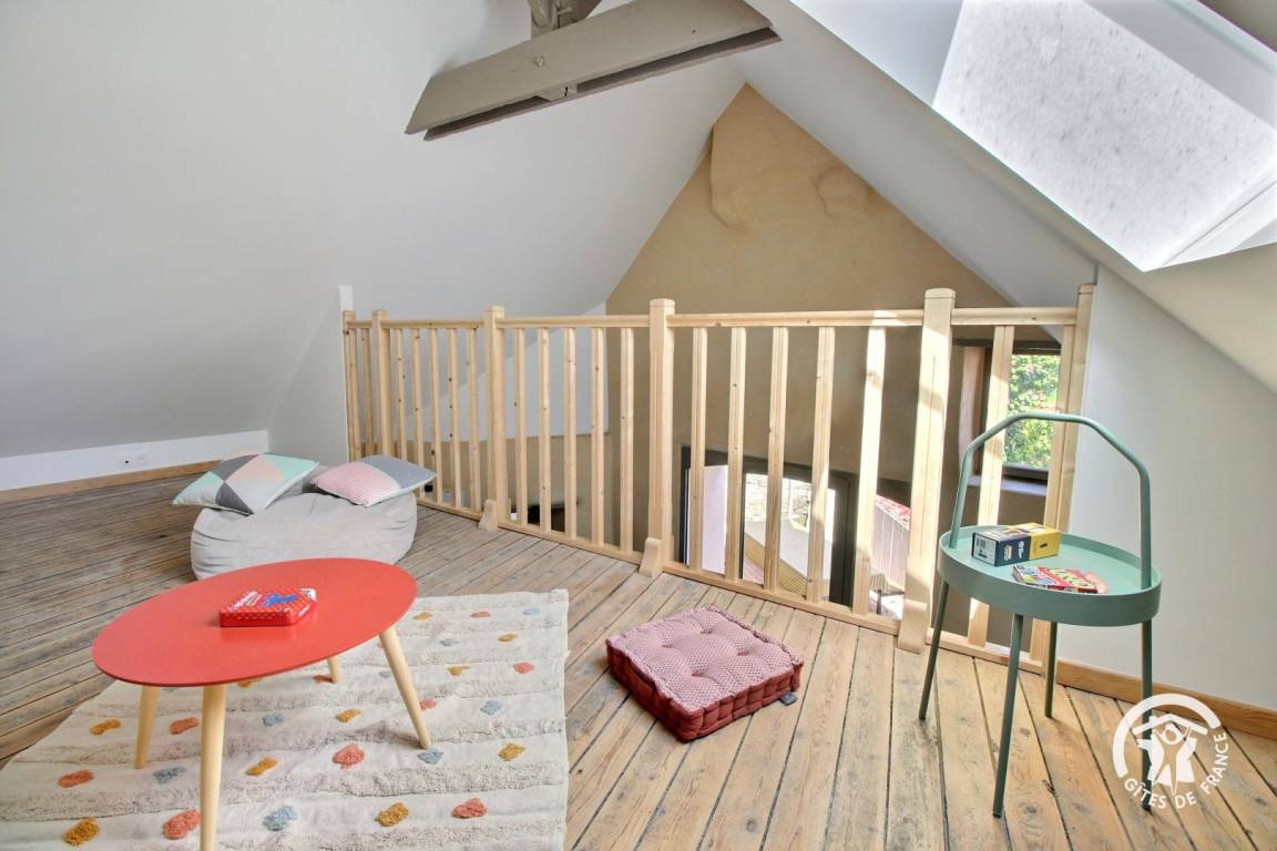 - Zwischengeschoss mit Kinderspielen und Schlafsofa.