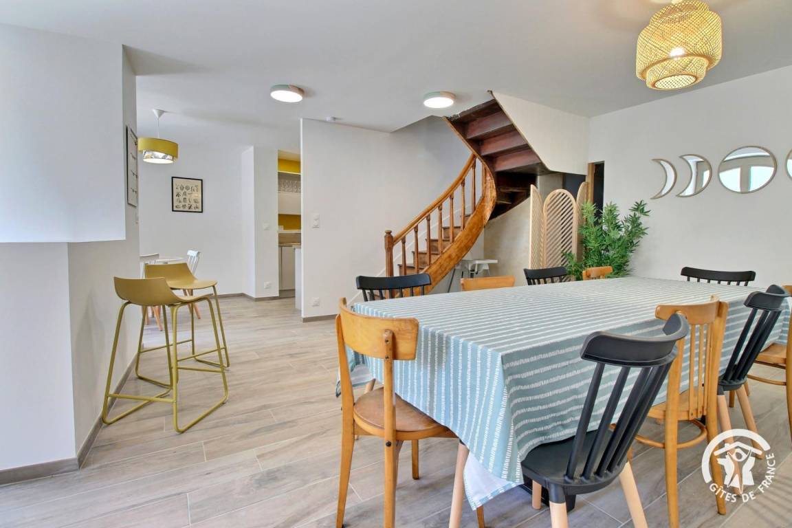 „Notre famille recomposée a pu trouver dans cette escale enchantée un cadre adapté. Très bien placée dans le village, cette maison de ville nous a accueillis confortablement. Les chambres sont décorées avec goût, la literie est excellente, les salles de bain fonctionnelles. Nous n'avons pas profité des extérieurs, il ne faisait pas chaud, mais il est facile d'imaginer son usage aux beaux jours. Nous ne regretterons que l'absence d'un canapé dans la pièce de vie. la salle de jeux à l'étage est un plus pour les enfants, et les parents... attention cependant à l'escalier, il suffirait d’installer une barrière de sécurité pour être tout à fait tranquilles. Nous recommandons cette escale enchantée qui permet de visiter cette belle ville de JOSSELIN et ses maisons pittoresques.“