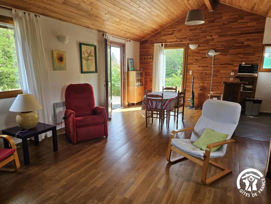 „Nous recherchions le calme, la simplicité et un environnement naturel, nous avons trouvé tout cela chez notre hôte. Quelques jours très agréables et reposants dans le chalet cocooning, accueillis très gentillement par sa propriétaire. Merci encore!“