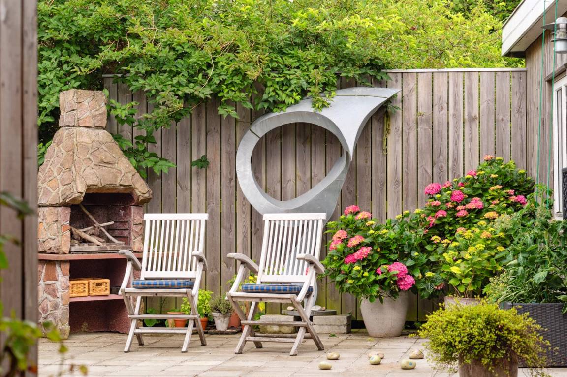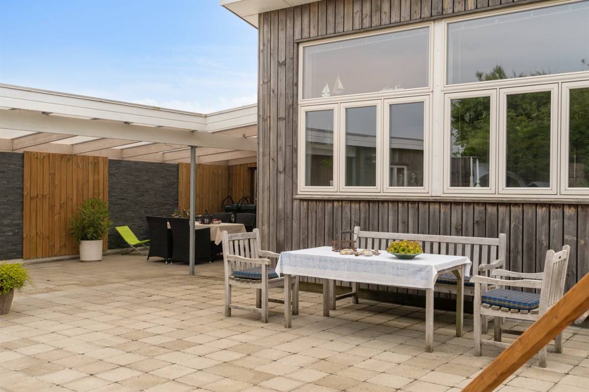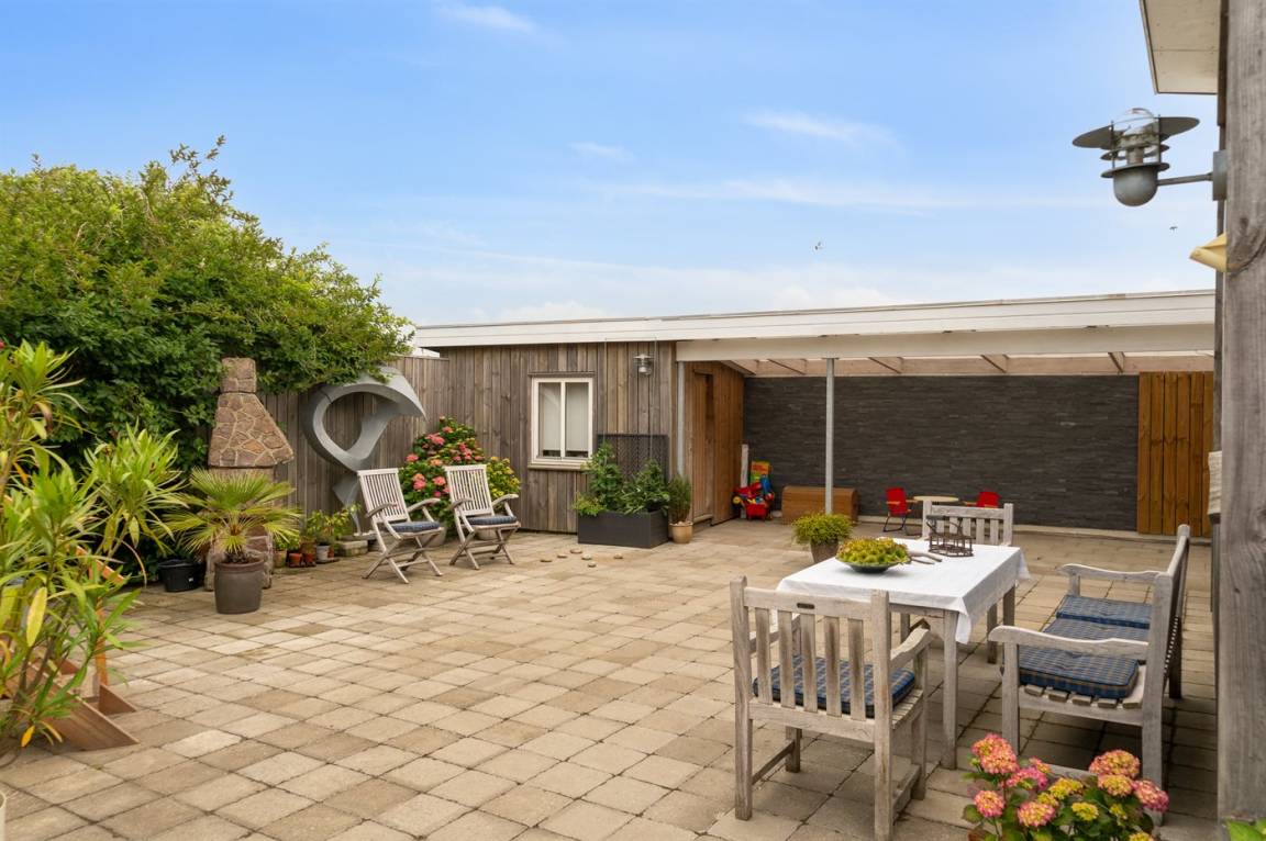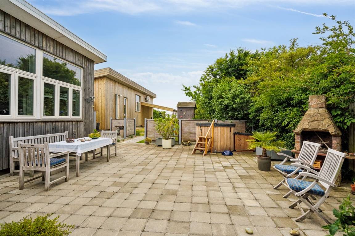 Auf dem Grundstück und der Terrasse gibt es viele gemütliche Ecken mit Gartenmöbeln, sodass du die Sonne von morgens bis abends genießen kannst. Es gibt sowohl eine überdachte als auch eine offene Terrasse. Auf der überdachten Terrasse hinter dem Haus kannst du die ungestörte Lage genießen, und an den milden Abenden sorgt ein Außenkamin für eine gemütliche Atmosphäre. Für die Kinder gibt es einen Spielturm mit Schaukel und Sandkasten.