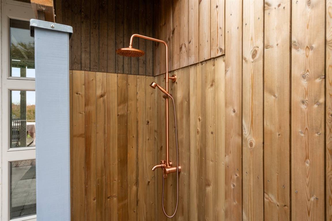 Nach der Nutzung der Außendusche mit kaltem und warmem Wasser hast du die Möglichkeit, dich im Außenwhirlpool mit Standwasser für 6 Personen oder in der Innensauna zu entspannen.