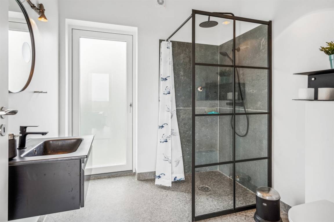 Es gibt 1 Badezimmer mit Fußbodenheizung und Duschnische sowie 1 Badezimmer mit Duschnische. Außerdem steht eine Waschmaschine zur Verfügung.