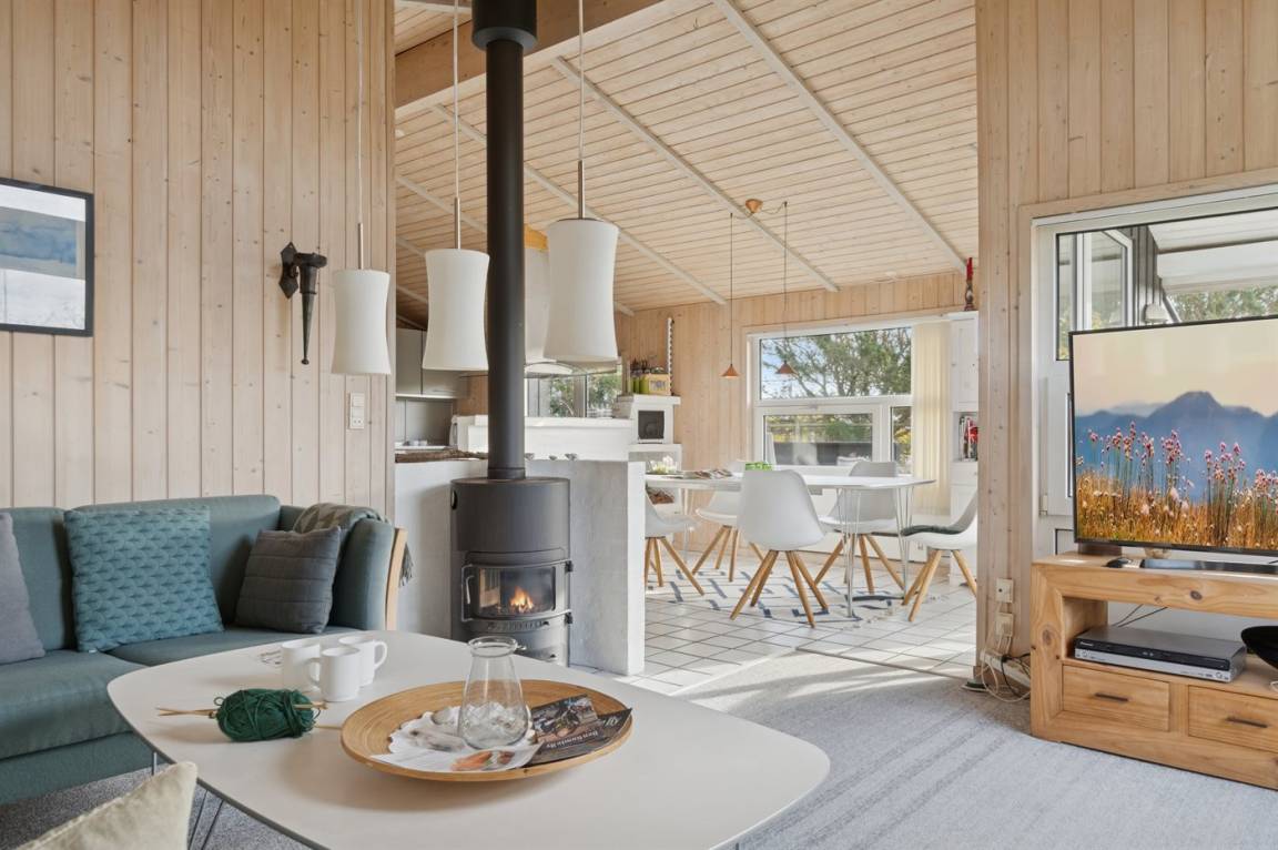 Das Innere des Hauses tritt nett und gepflegt hervor, man sieht jedoch auch, dass es im Laufe der Zeit bewohnt und genutzt wurde. Die Einrichtung ist hell und freundlich, mit einem durchdachten Grundriss, der ideal für eine Familie mit Kindern oder zwei Paare ist. Alles in allem bietet dieses Ferienhaus die besten Voraussetzungen für einen erholsamen Urlaub.