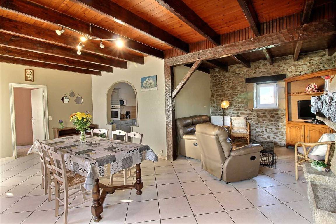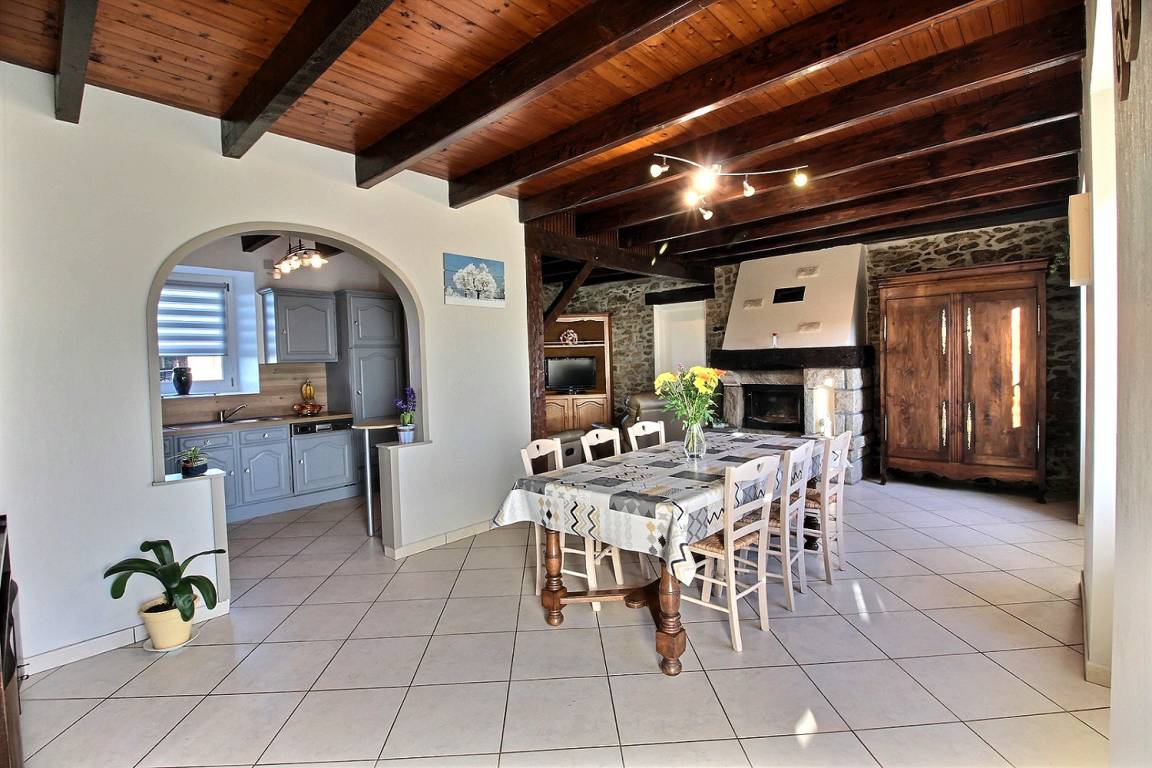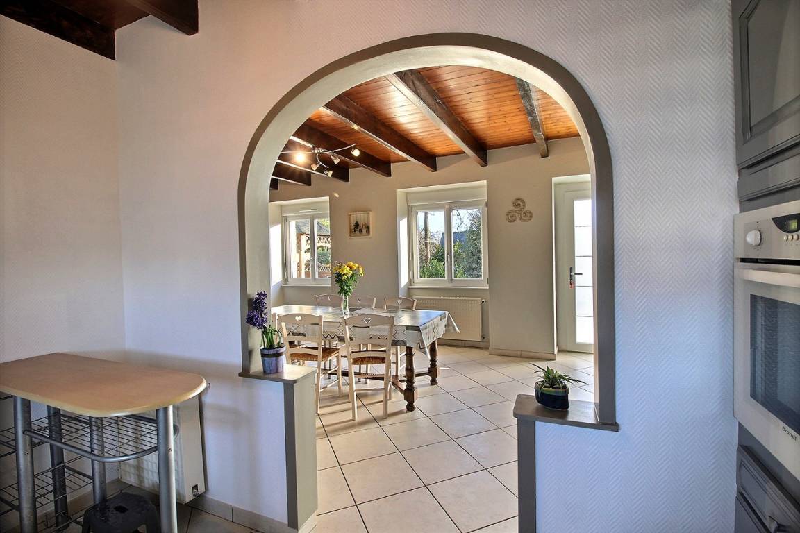 Ihre Ferienwohnung umfasst im Erdgeschoss: ein großes Wohnzimmer mit Küchenbereich und Wohn-Esszimmer (dekorativer Kamin), eine separate Toilette, einen Wasch-/Abstellraum. Im 1. Stock: 3 Schlafzimmer (1 Doppelbett 140X190)(1 Doppelbett 140X190)(2 Einzelbetten 90X190), ein Badezimmer mit Dusche und Waschbecken, eine separate Toilette. Gîte mit angrenzender ganzjähriger Miet- und Bürofläche. Angrenzender privater umzäunter Garten mit gepflastertem Weg, Rasen, Kiosk und umzäuntem Brunnen. Privater asphaltierter Parkplatz gegenüber der Unterkunft. Im Winter ist ein Heizpaket von 10 €/Tag vor Ort zu zahlen.