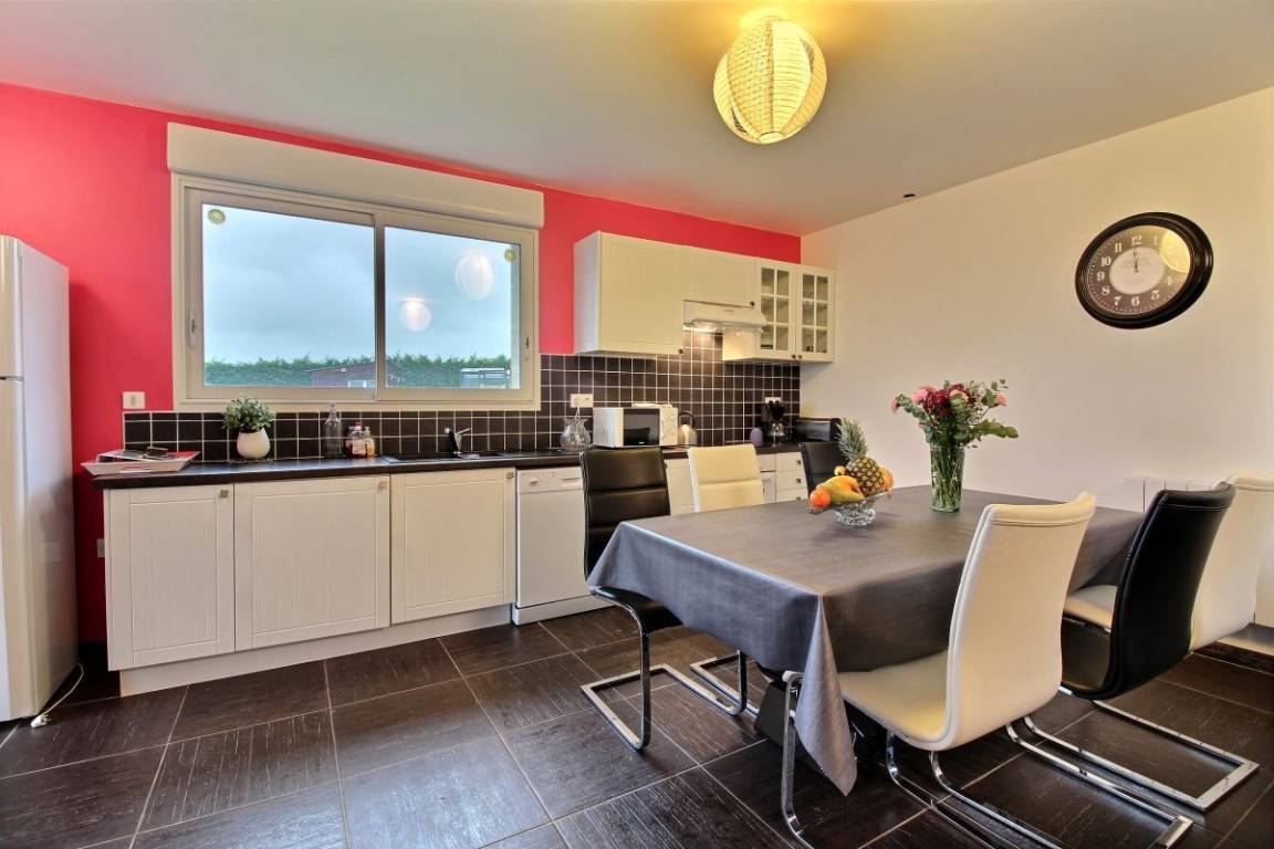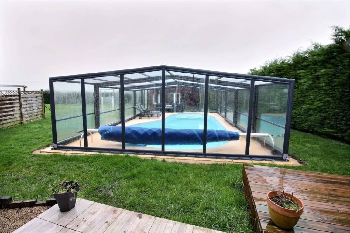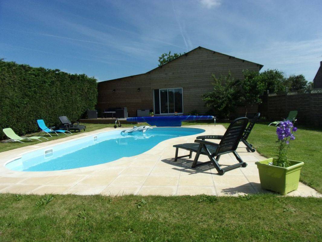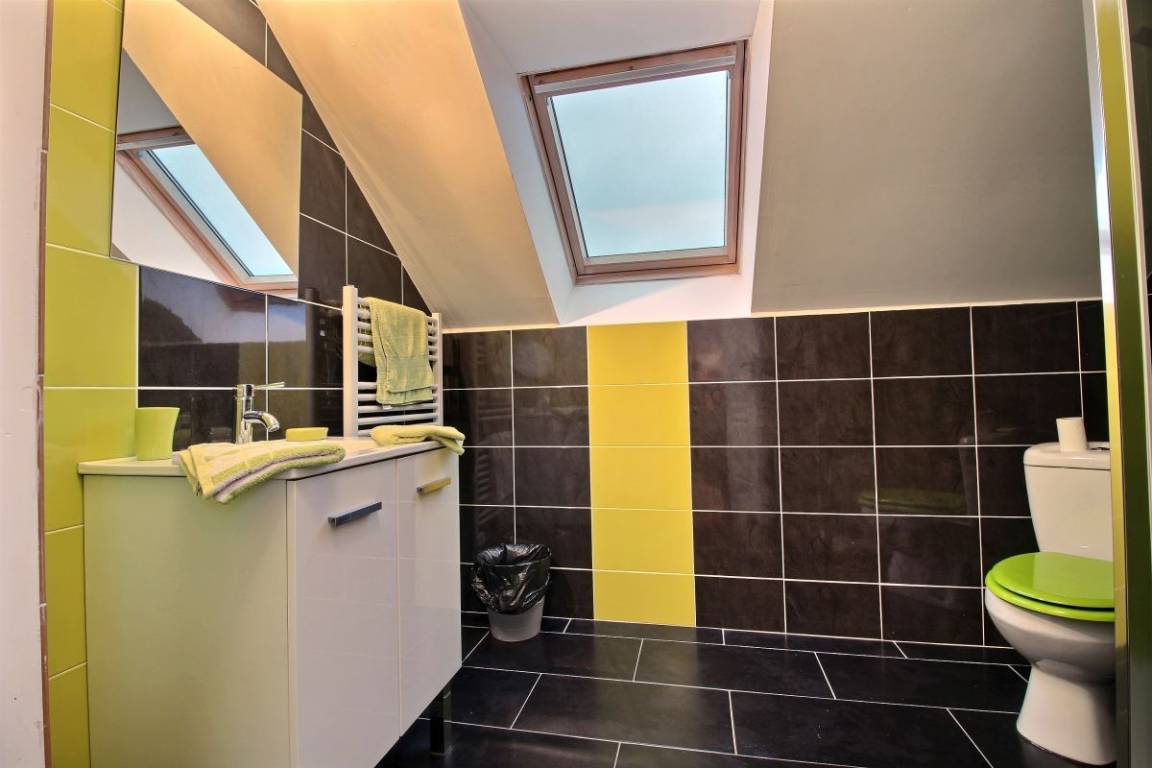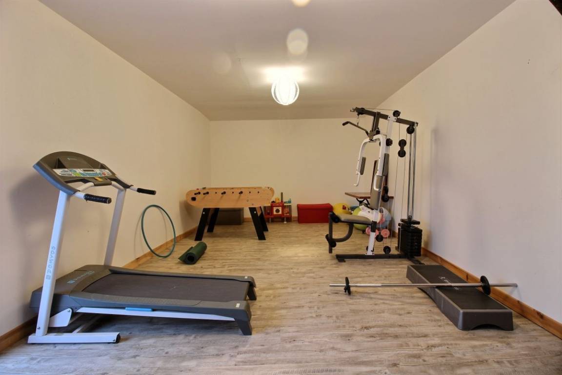 Diese Ferienhausvermietung umfasst: Im Erdgeschoss: großes Wohnzimmer mit Einbauküche, separates WC, kleinen technischen Raum. Im Obergeschoss : 2 Schlafzimmer jeweils mit eigenem Bad (Dusche und WC) (1 Bett 140x190) (2 Einzelbetten). Terrasse ist vorne, kleiner privater Innenhof auf der Rückseite. Großes, eingezäuntes Grundstück vor dem Haus zur gemeinsamen Verfügung mit dem anderen Bauernhaus. Vor Ort, ebenfalls gemeinsam verfügbar mit dem anderen Haus und den Besitzern, ein beheiztes, überdachtes Schwimmbad, von April bis zu den Herbstferien, und das ganze Jahr über eine Sauna und ein Spa, ebenso ein Fitnessraum (Laufband, Hantelbank, Tischfußballspiel ... und Kinderspiele).
