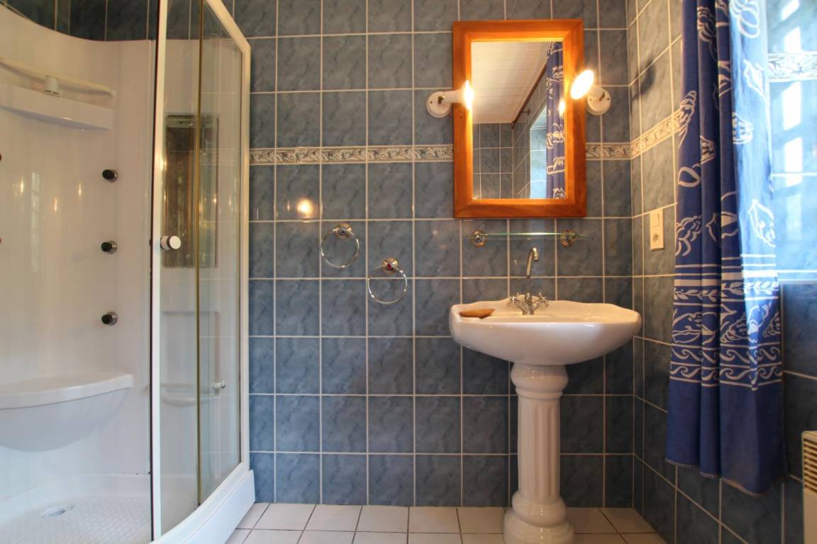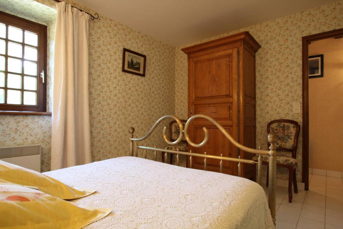 Doppelhaushälfte neben dem Haus des Eigentümers. Wohnzimmer mit Kochnische. Boudoir mit Zugang zum Garten. Obergeschoss: Schlafzimmer 1 (Doppelbett 140x190 cm), Schlafzimmer 2 (Doppelbett 140x190 cm). Duschbad mit WC. Ein Kinderbett kann auf Anfrage vom Eigentümer bereitgestellt werden. Fernseher. WLAN. Waschmaschine. Geschirrspüler. Bettwäsche und Handtücher werden gestellt, die Betten sind bei Ankunft bezogen. Reinigungsservice inklusive. Elektrische Heizung inklusive. Alle Nebenkosten inklusive. Großes, bewaldetes, nicht eingezäuntes Grundstück zur Mitbenutzung mit dem Eigentümer. Private Terrasse mit Gartenmöbeln und Grill. Carport. Kleine, sichere Teiche mit Enten.