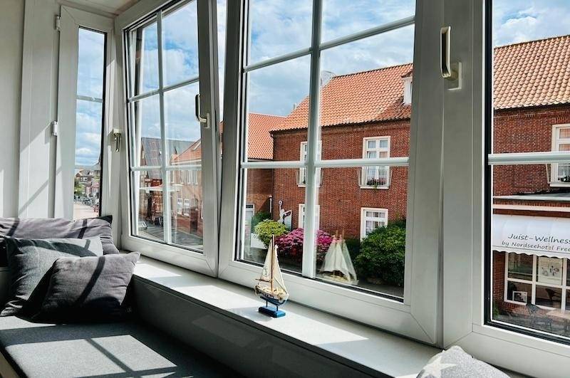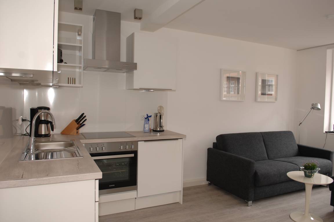 2-Zimmer Ferienwohnung mit Schlafzimmer (Doppelbett) und Wohnküche (Schlafsofa für 2 Personen) mit komplett eingerichteter Küche und Esstisch, "Utlucht", Flatscreen LCD TV, Bad mit Fenster (Dusche und WC), WLan