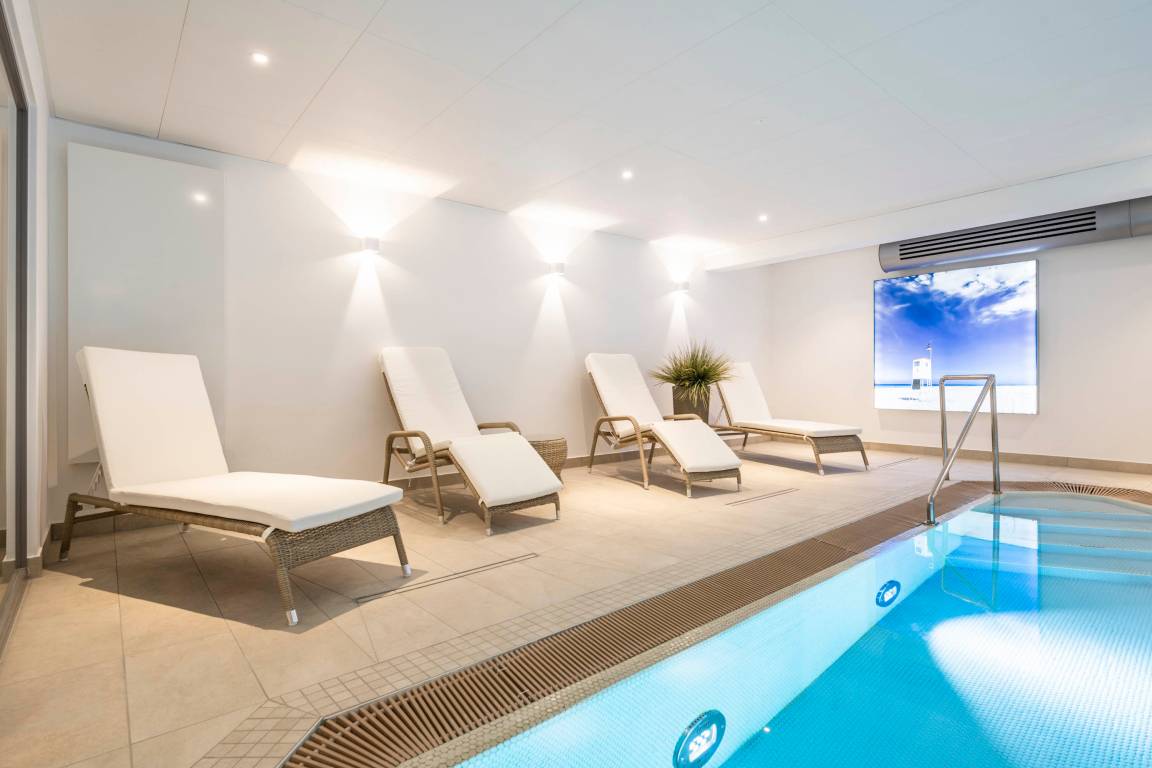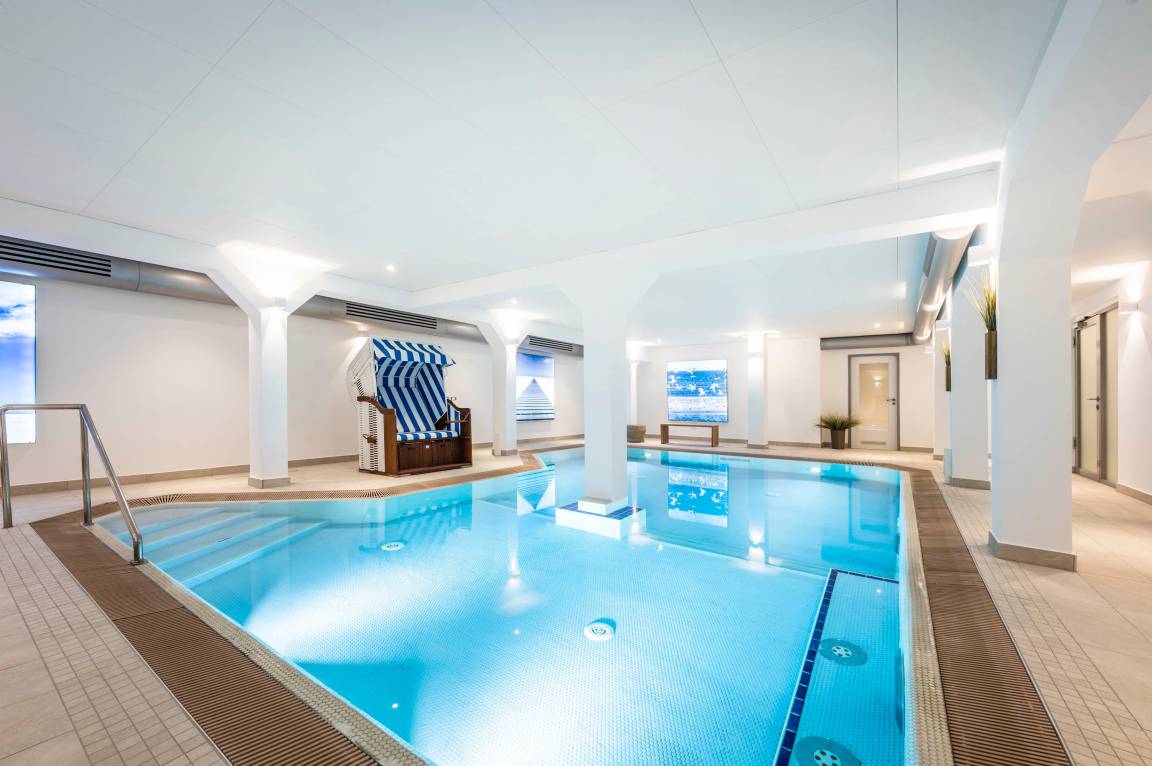 Strandburg Turmwohnung 205, zentrale Lage mit modernem Wellnessbereich im Haus.