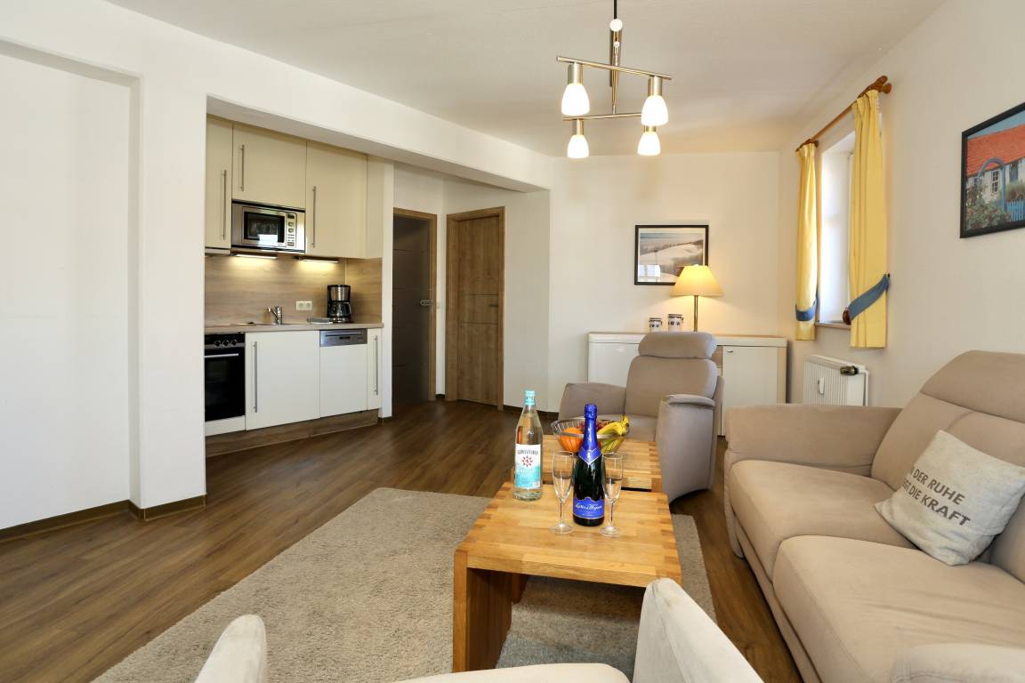 Die komfortable Turmwohnung 205 in der Inselresidenz Strandburg bietet auf 62 m² alles für einen erholsamen Aufenthalt für bis zu vier Personen.