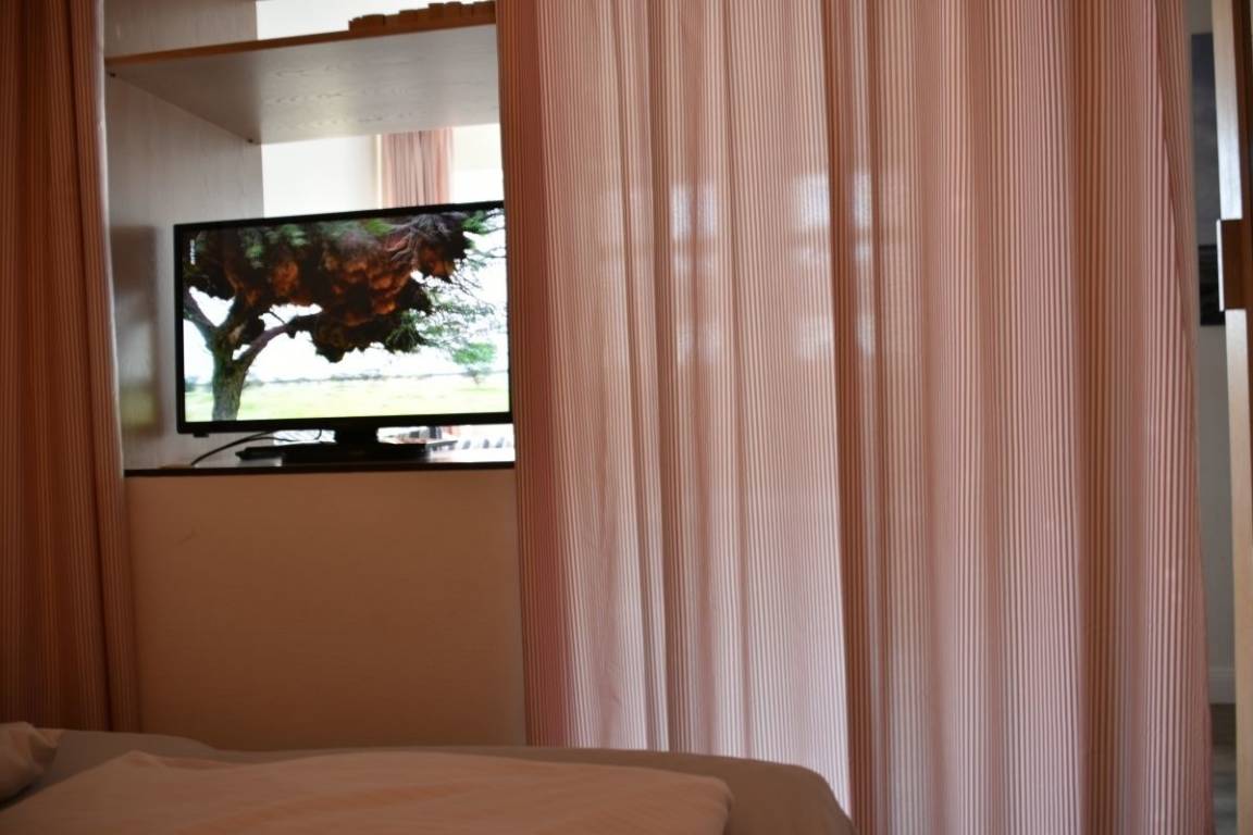 Nichtraucher-Ferienwohnung für 2 bis 5 Personen mit Schwimmbad und Sauna. 50qm, 3 Schlafzimmer - davon 1 Wohnschlafraum mit freistehendem Doppelbett, 1 Einzelbett und 1 Etagenbett für Kinder (80x180), Küche, Bad, 2 Trittbalkone.