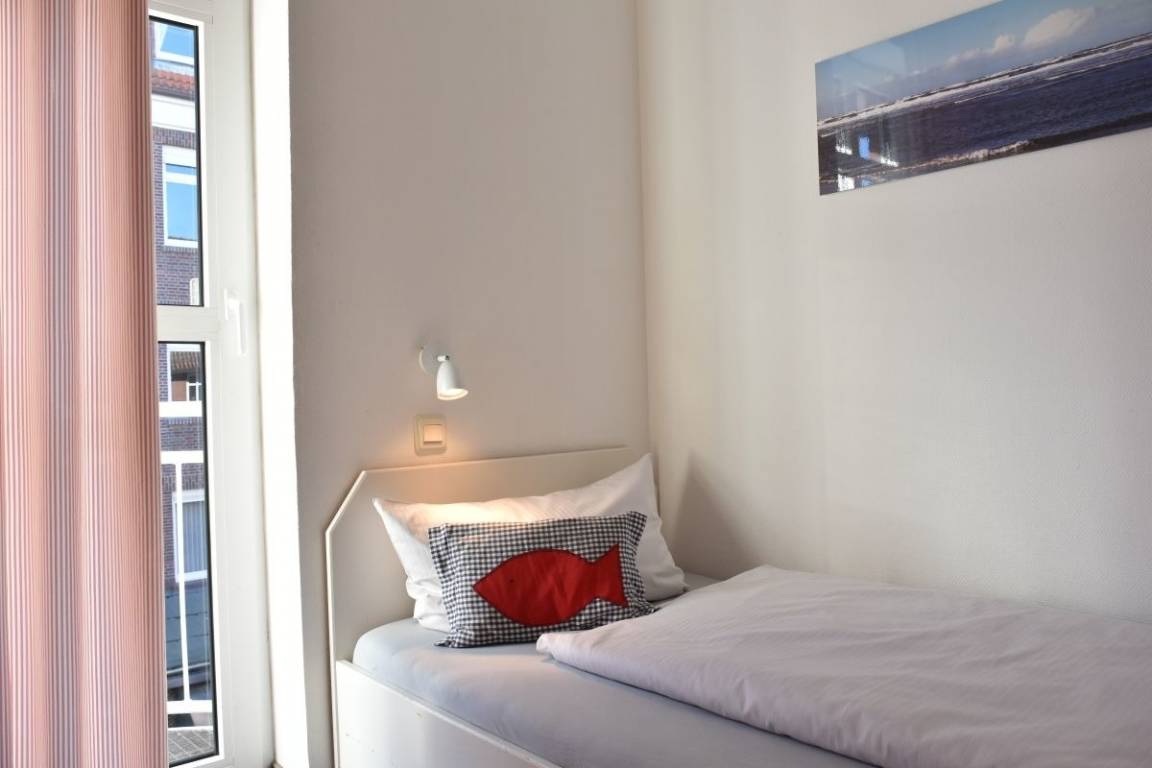 Diese komfortabel eingerichtete ferienwohnung-juist-strandburg 206 in der Inselresidenz Strandburg mit Schwimmbad und Sauna ist ideal geeignet für einen entspannten Urlaub für 2 oder 3 Personen oder als Familienurlaub für bis zu 5 Personen, zb. 3 Erwachsene und 2 Kinder. Die Wohnung besteht aus 4 Zimmern. Im Wohnraum mit Sofa und Récamiere steht optisch getrennt das freistehende Doppelbett (statt Schlafsofa), mit den Maßen 160 x 200cm. In den beiden Schlafzimmern steht ein Einzelbett (90 x 200cm) und ein Etagenbett, welches mit den Maßen 80 x 180cm ideal für Kinder geeignet ist. Über die beiden Schlafräume gelangt man zu den beiden Trittbalkonen , die einen wunderbaren Weitblick auf das Wattenmeer und die Strandstrasse bieten. Ein Essplatz für bis zu 5 Personen befindet sich in der Essdiele. Die Küchenzeile ist komplett ausgestattet incl. Geschirrspüler, Mikrowelle, 4 Koch Ceranfeld etc. Den Gästen in der Strandburg steht der hauseigene Wellnessbereich mit Schwimmbad und Sauna zur Verfügung. Im Mietpreis enthalten sind Bettwäsche, Handtücher, Geschirrtücher. Ein Hochstuhl + Kinderbett auf Anfrage. Bei Anreise liegen Bademäntel für 2 Erwachsene bereit, weitere Bademäntel für Mitreisende auf Anfrage (Kindergrößen vorhanden). Die Wohnung liegt in der 2. Etage und ist problemlos mit einem Aufzug zu erreichen. Bei Ankunft im Haus werden Sie von der freundlichen Hausdame am Empfang begrüßt, die Ihnen auch während Ihres Aufenthaltes bei Fragen gerne zur Verfügung steht. Im Untergeschoss stehen Ihnen Münzwaschmaschinen- und Trockner zur Verfügung. Es ist bis zu 1 Hund gegen Aufpreis in der Wohnung erlaubt. Hierfür gilt die Hunde Hausordnung der Inselresidenz Strandburg.