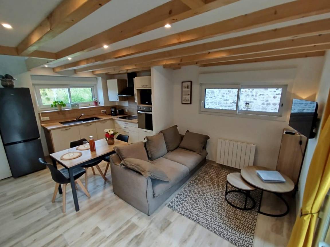 „Gîte tout neuf, ultra fonctionnel, très belle disposition, fournitures, etc... tout est neuf. Propriétaire dans la maison d'à côté très accueillants (ainsi que leur chat!).Route avec des passages fréquents en haute saison. Très bon séjour, on conseille!“