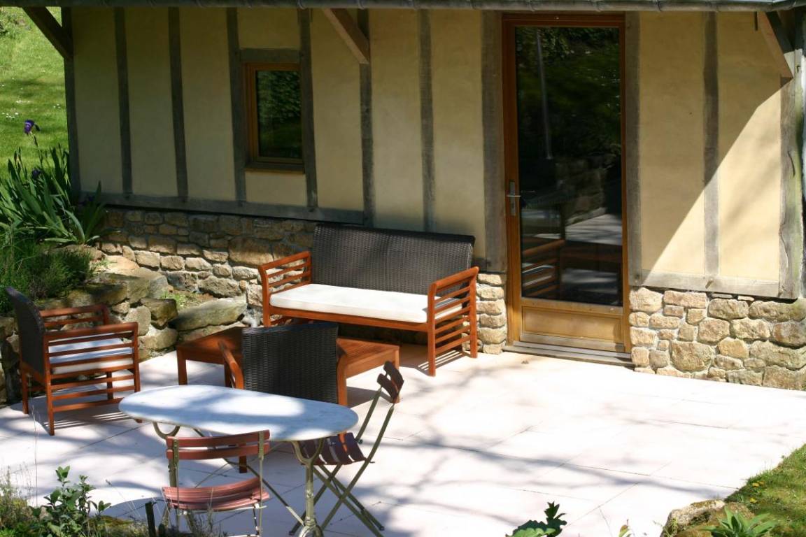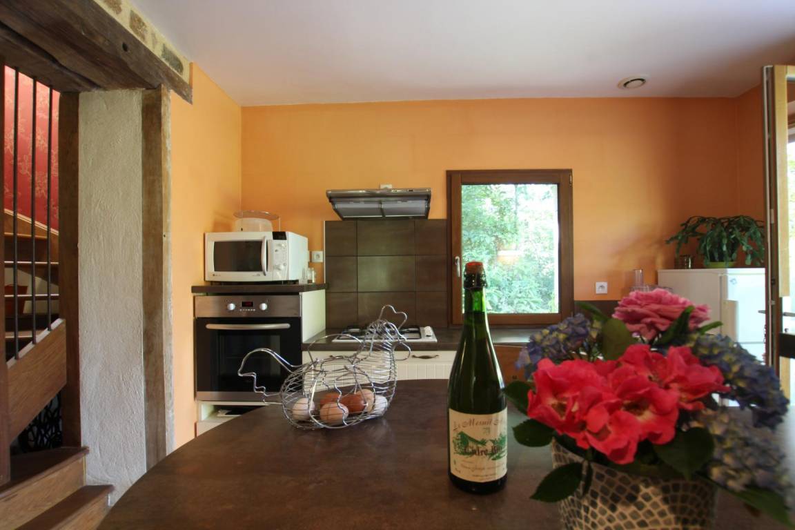 „Nous avons été chaleureusement accueillis par la propriétaire, très attentionnée, avec un joli bouquet de fleurs du jardin et une bouteille de cidre en guise de bienvenue. Le gîte, plein de charme, offre un cadre ressourçant en pleine nature, ce qui est un vrai bonheur. Malheureusement, la météo n’était pas au rendez-vous et nous n’avons pas pu profiter de la terrasse, ce qui est bien dommage!“