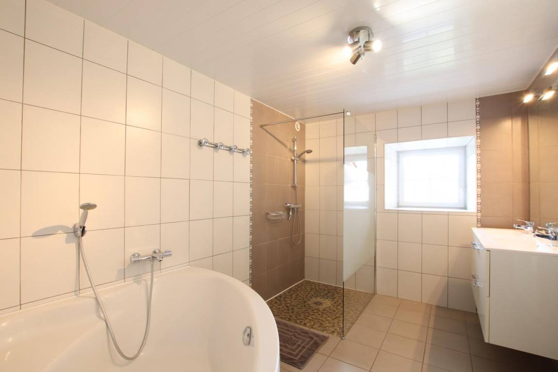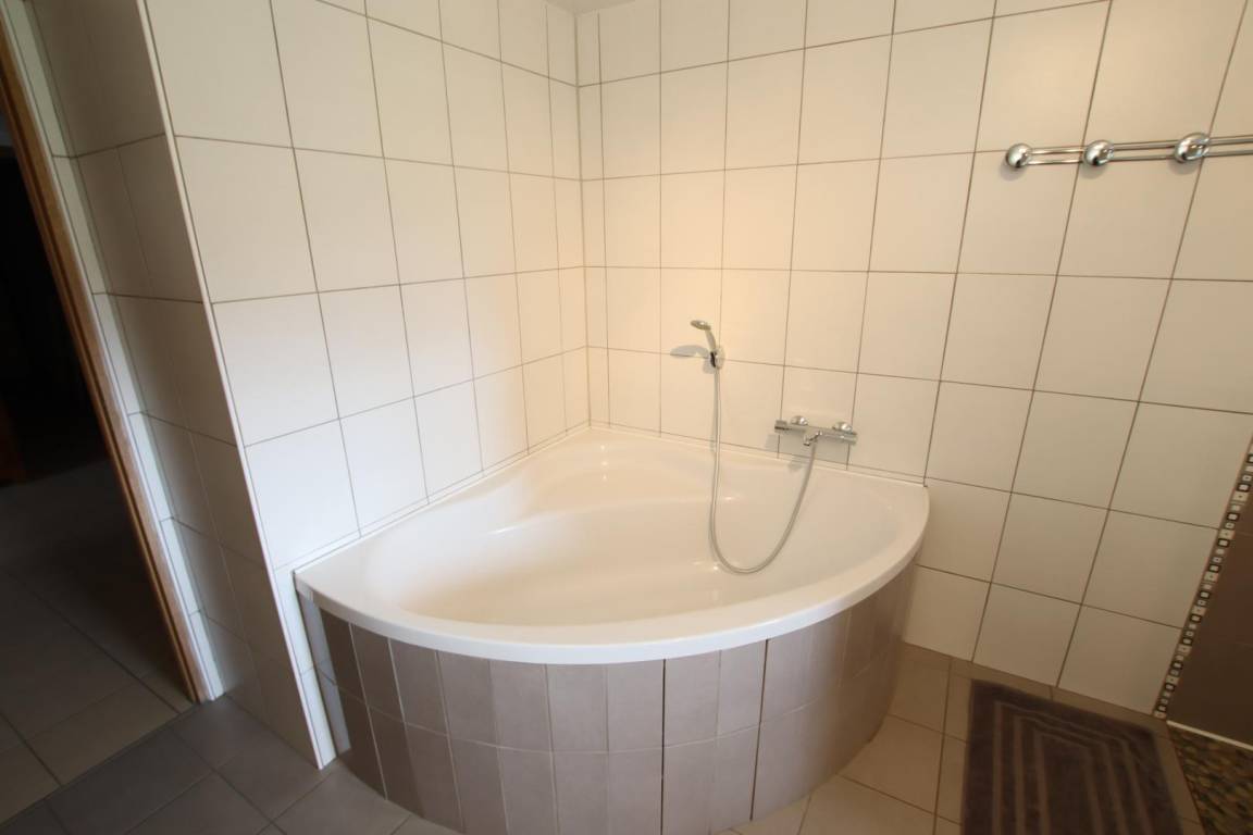 Badezimmer (Eckbadewanne und Dusche). Toilette. Keller (Waschmaschine).