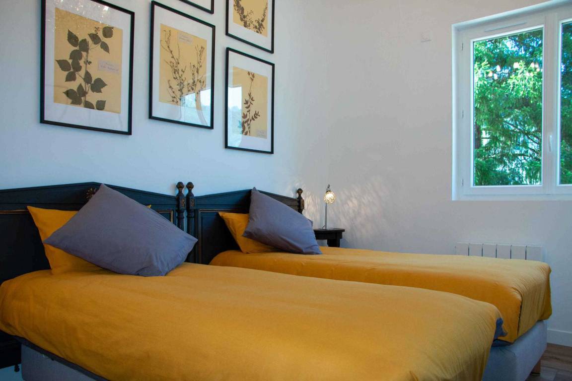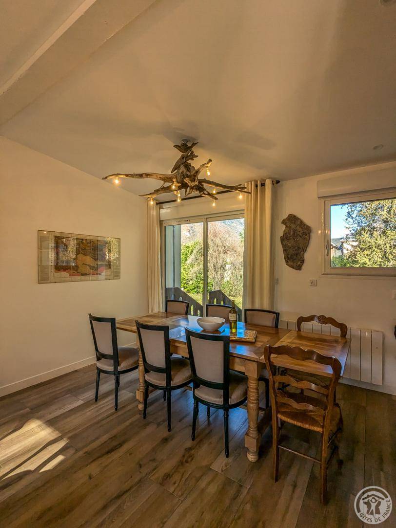 „Un séjour parfait à tous points de vue !Un accueil chaleureux par Françoise, voisine du gîte, très disponible et toujours prête à rendre service, un gîte magnifique, au delà de nos espérances, au confort parfait (literie, canapé, salles de bain..., hyper bien équipé (vaisselle, machines, linge, hifi..., une déco chaleureuse et originale, une vue incroyable sur les sommets environnants qui nous a fait rêver, un jardin immense où les enfants ont passé des bons moments à courir, à se cacher, et nous à discuter ou lézarder à l'ombre des grands arbres, des environs superbes à visiter, une météo clémente, des propriétaires charmants, très réactifs à nos questions...bref une semaine inoubliable qui ne nous donne qu 'une envie: Celle de revenir au plus vite dans ce gîte hors du commun (et nous parlons en connaisseurs car nous louons des maisons depuis 40 ans !Merci donc à Bruno et Odile de nous avoir permis de profiter de leur merveilleuse maison !“