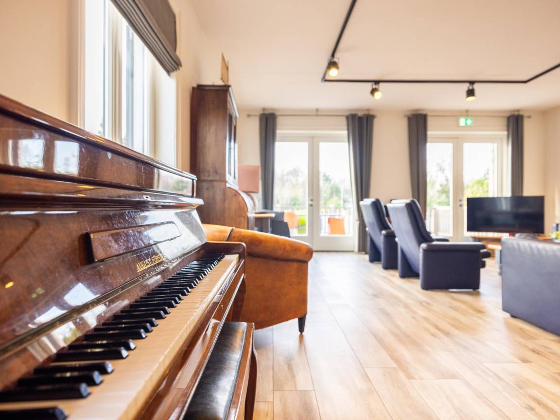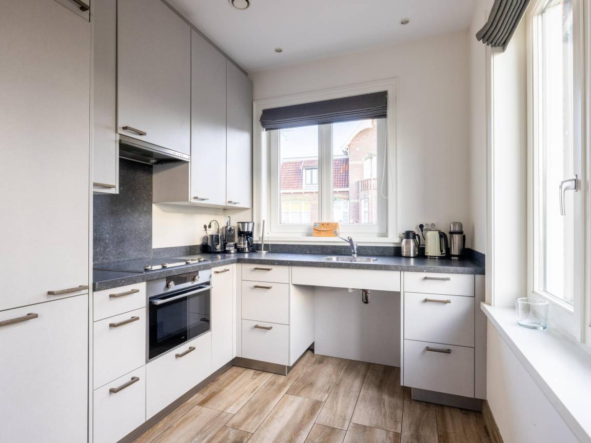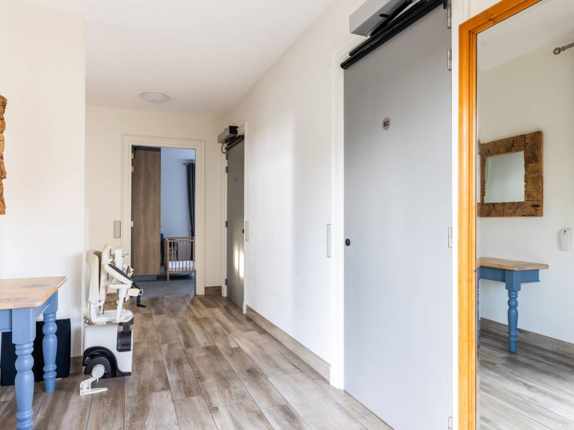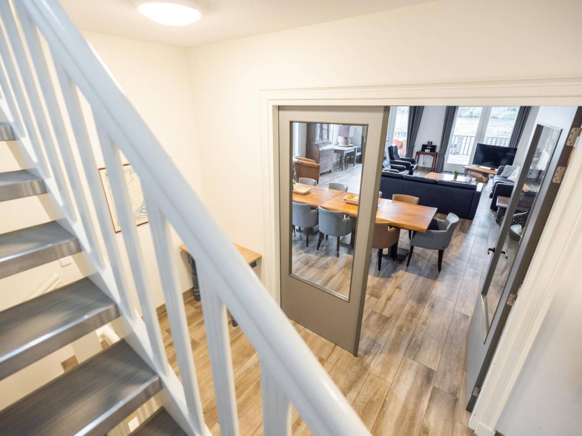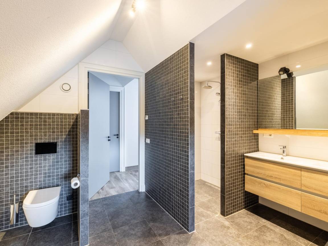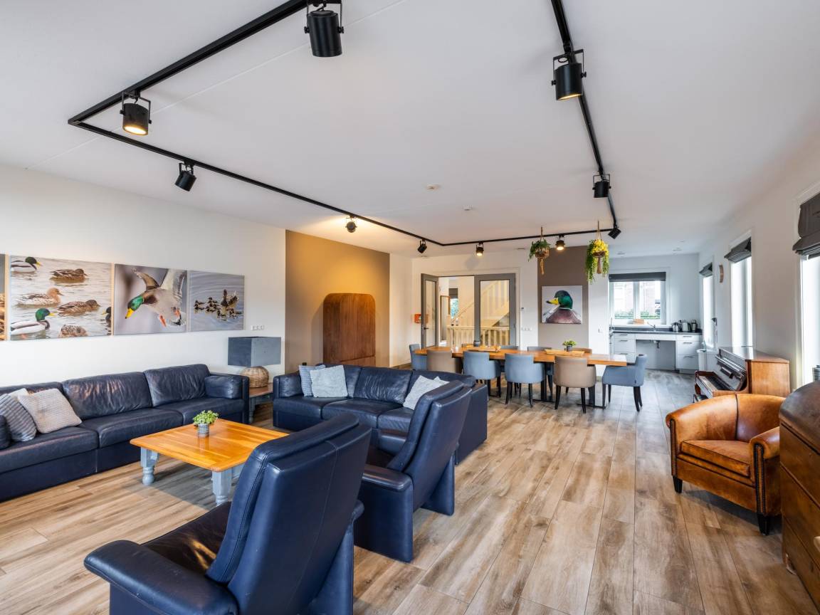 Layout : Parterre: Eingang mit Toilette, Urinal , Wohnzimmer mit TV(Flatscreen, smart TV, Niederländische TV-Kanäle, Deutsch Fernsehsender, internationale TV-Kanäle), Esstisch(8 Personen), Sitzecke(8 Personen), CD-Spieler , offene Küche mit Kochplatte(4 Kochplatten, Induktion), Wasserkocher, Dunstabzugshaube, Kaffeemaschine(cups, Filter), Kombi-Mikrowelle, Geschirrspüler, Kühlschrank(+ Gefrierfach) , Schlafzimmer mit Badezimmer mit 2x Einzelbett(Boxspring, 90 x 200 cm), Dusche(angepasst für Behinderte, ebenerdige Dusche, Regen), Waschbecken, Toilette(angepasst für Behinderte)
