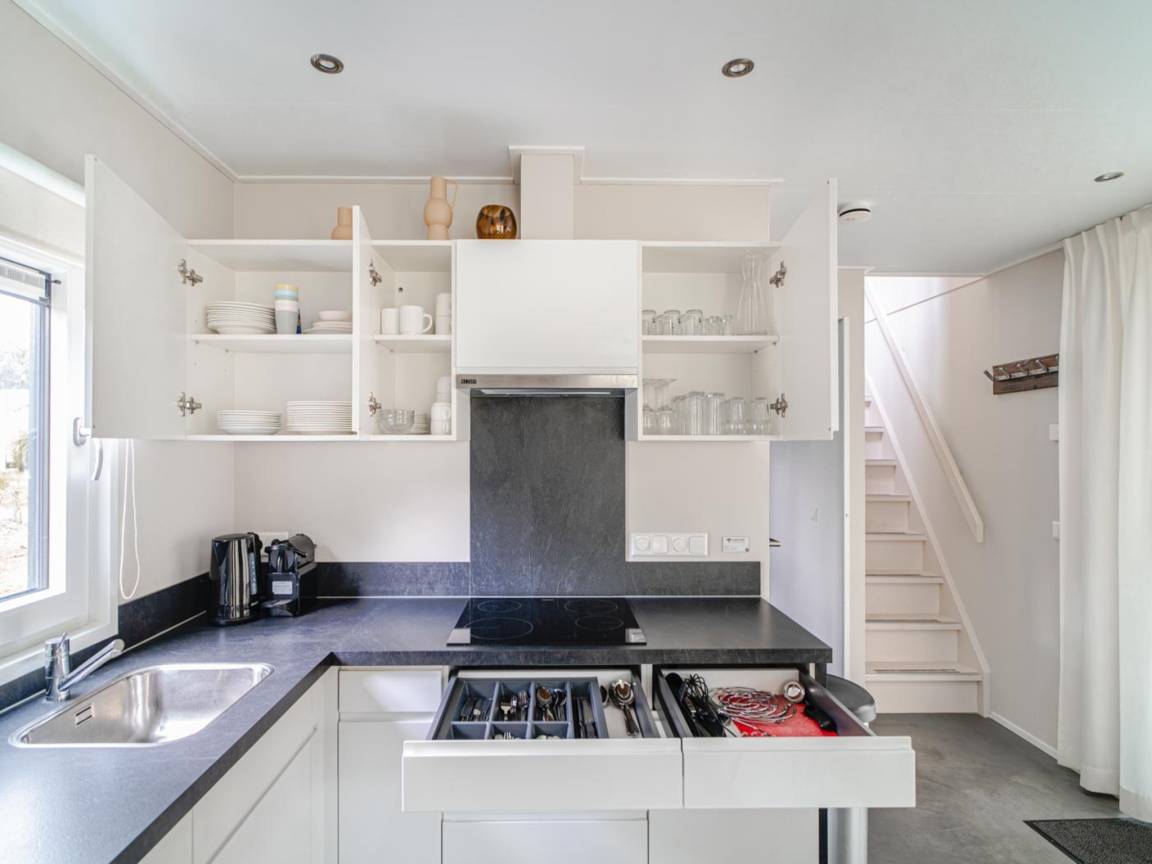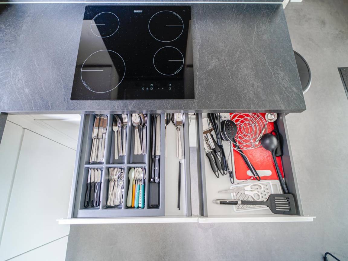 Layout : Parterre: offene Küche mit Kochplatte(4 Kochplatten, Induktion), Wasserkocher, Dunstabzugshaube, Kaffeemaschine(nespresso cups), Kombi-Mikrowelle, Geschirrspüler, Kühlschrank(+ Gefrierfach) , Wohn/Esszimmer mit TV(Flatscreen, smart TV), Esstisch, Sitzecke , Schlafzimmer mit Badezimmer mit Doppelbett(2 Einzelbetten, Zwei Einzelbettdecken), Dusche(ebenerdige Dusche, Regen), Waschbecken, Toilette, Heizung(elektrisch) , Toilette mit Toilette , Klimaanlage