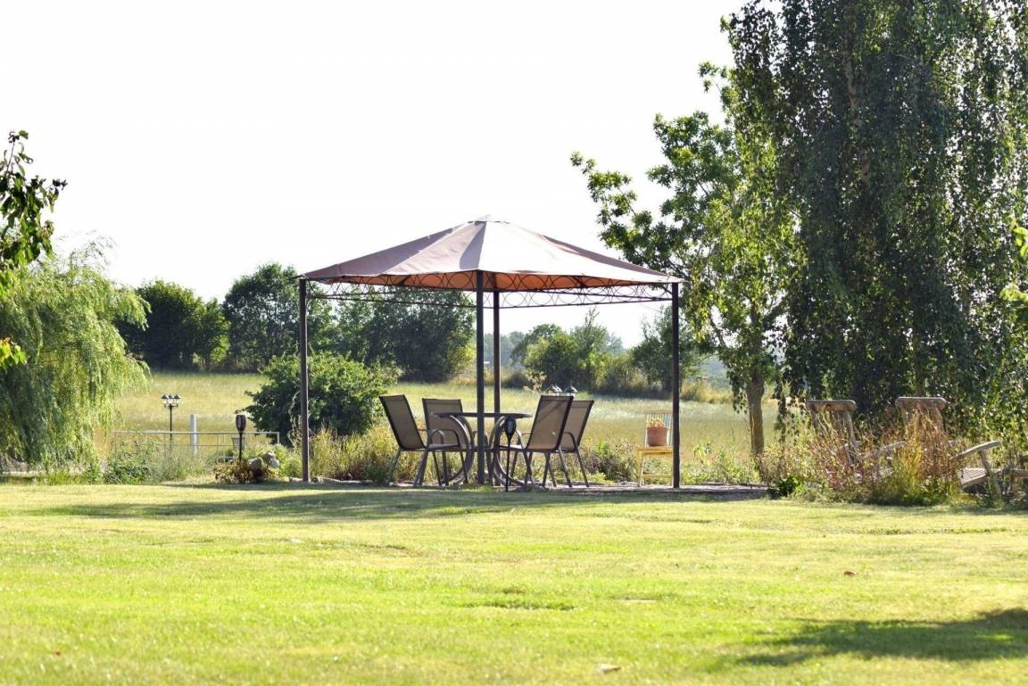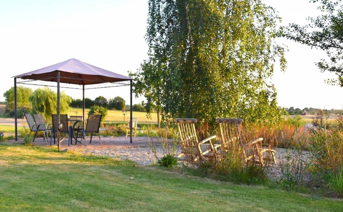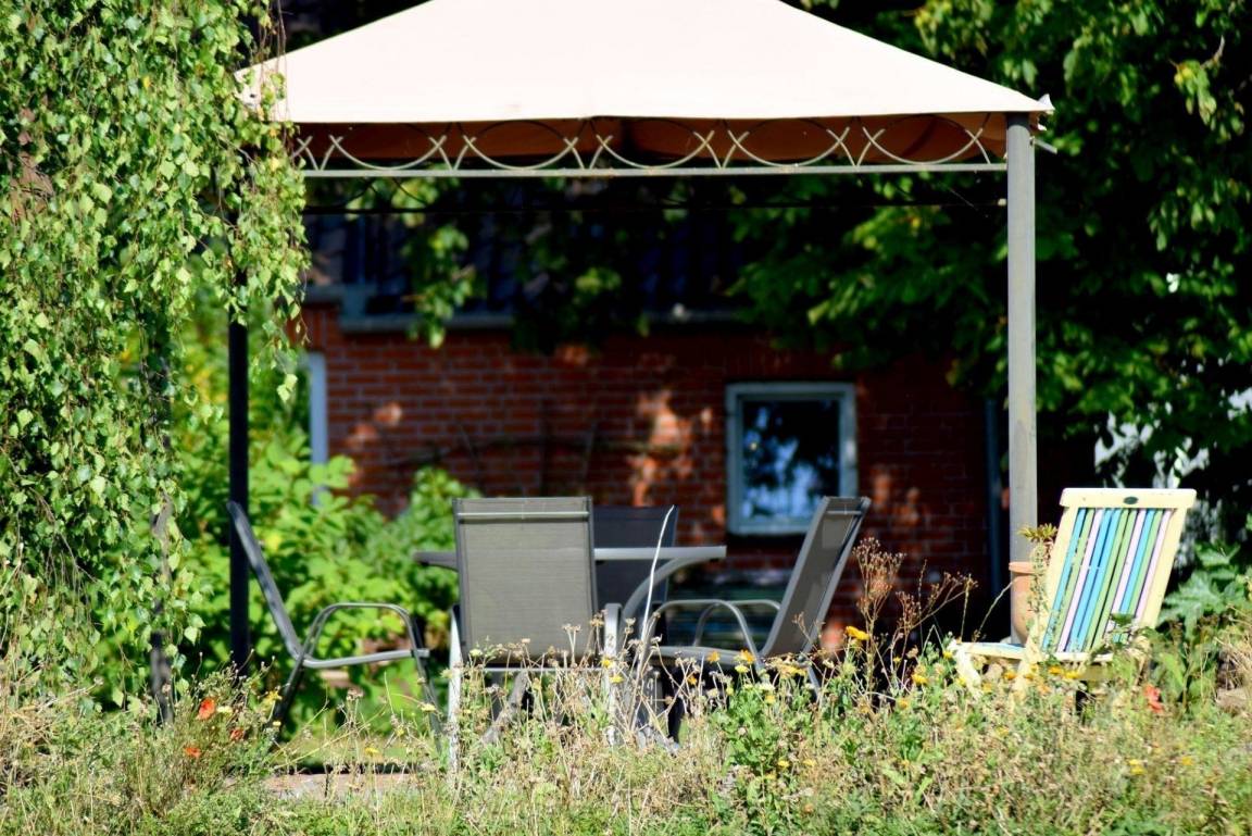 Der Außenbereich der Ferienwohnung "Kleine Schwalbe" bietet eine reizvolle Oase zur Erholung. Gäste können den großen, idyllisch anmutenden Garten genießen, der mit einer Terrasse, Sitz- und Grillmöglichkeiten ausgestattet ist. Dieser Bereich steht sowohl den Gästen als auch den Eigentümern der Anlage zur gemeinschaftlichen Nutzung zur Verfügung. Hier lässt sich der ländliche Flair in voller Pracht erleben – perfekt, um die Seele baumeln zu lassen oder den jungen Schwalben beim Flugversuch zuzusehen. Für Familien, die nah beieinander Urlaub machen möchten, gibt es zudem die Möglichkeit, die benachbarte "Große Schwalbe" zu buchen. Die Umgebung lädt zu Erkundungen ein, da Dahme, Kellenhusen und Grömitz in wenigen Autominuten erreichbar sind.