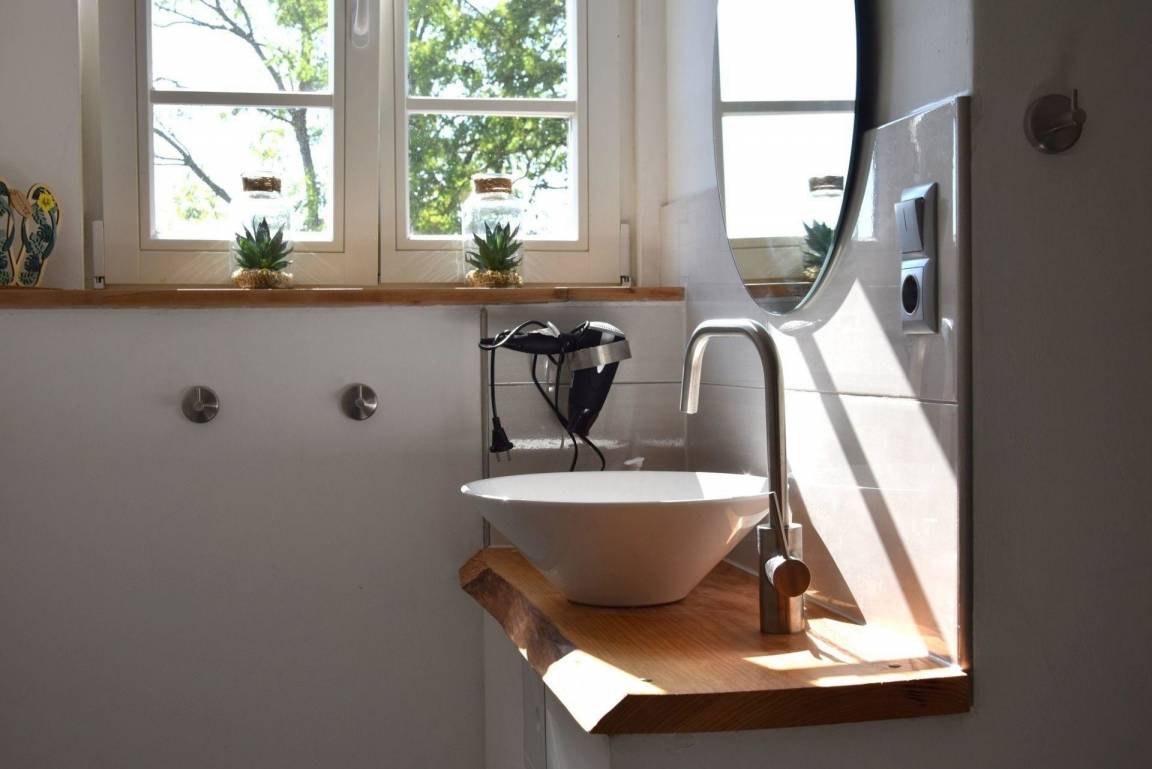 Die Ferienwohnung "Kleine Schwalbe" bietet auf 50 m² Platz für bis zu 4 Personen. Im Obergeschoss befindet sich ein Wohnzimmer mit einem kleinen Ofen und einer gemütlichen Wohnlandschaft. Die voll ausgestattete Küche ist mit einem Backofen und einem Geschirrspüler versehen. Die Schlafmöglichkeiten bestehen aus einem Schlafzimmer mit einem Doppelbett (140 x 200 cm) sowie einem weiteren Schlafraum mit zwei Einzelbetten (90 x 200 cm). Das Badezimmer ist mit einer Dusche und einem WC ausgestattet. Zur gemeinschaftlichen Nutzung stehen eine Waschmaschine und ein Trockner gegen Gebühr zur Verfügung, deren Nutzung im Haupthaus beim Eigentümer erfragt werden kann. Die Anreise erfolgt zwischen 16:00 und 17:00 Uhr, eine spätere Ankunft ist nach vorheriger Absprache möglich. Abreise ist spätestens um 10:00 Uhr. Ein Parkplatz steht direkt am Haus zur Verfügung.
