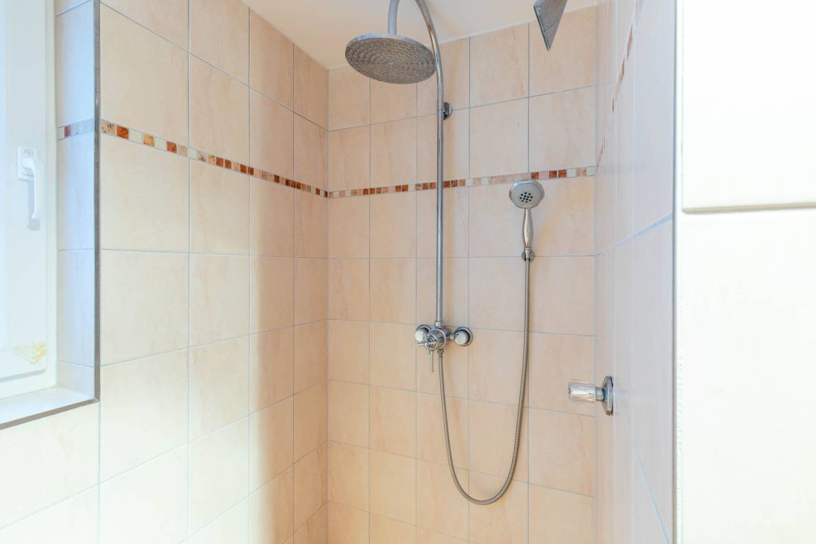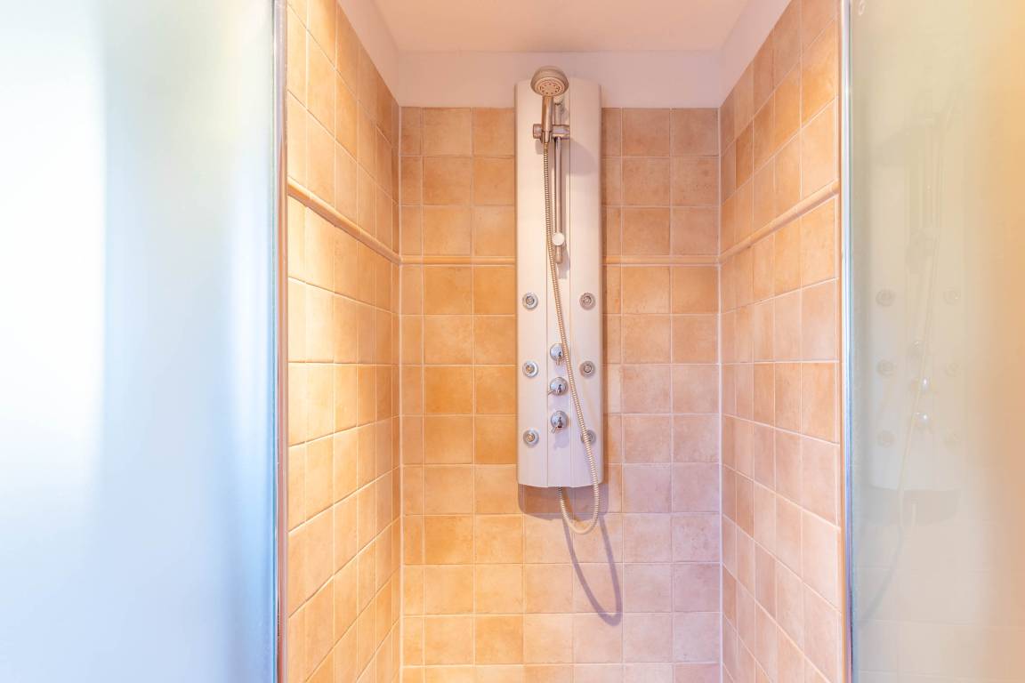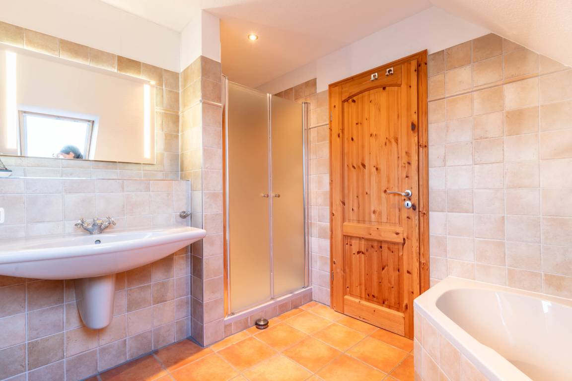 Ebenso gibt es auf dieser Ebene ein Badezimmer, welches mit einer Badewanne, einer Dusche und einem WC ausgerüstet ist.