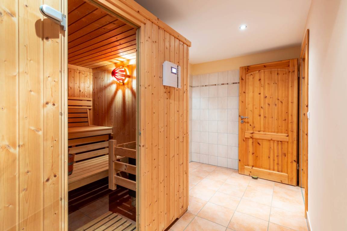 Darüber hinaus erwartet Sie auf dieser Ebene eine Sauna, die von bis zu 4 Gästen genutzt werden kann. Das ist Erholung pur!