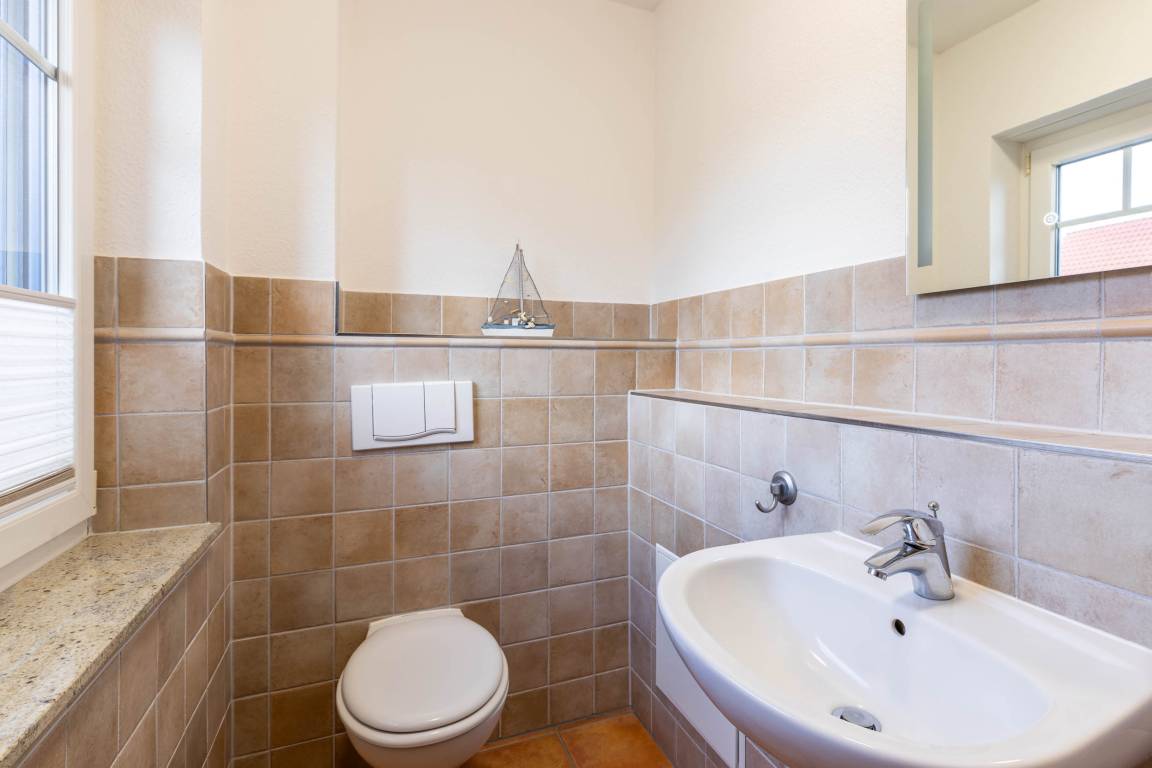 Des Weiteren befinden sich im Erdgeschoss eine Diele mit einer Kommode und eine Garderobe sowie ein Gäste-WC.