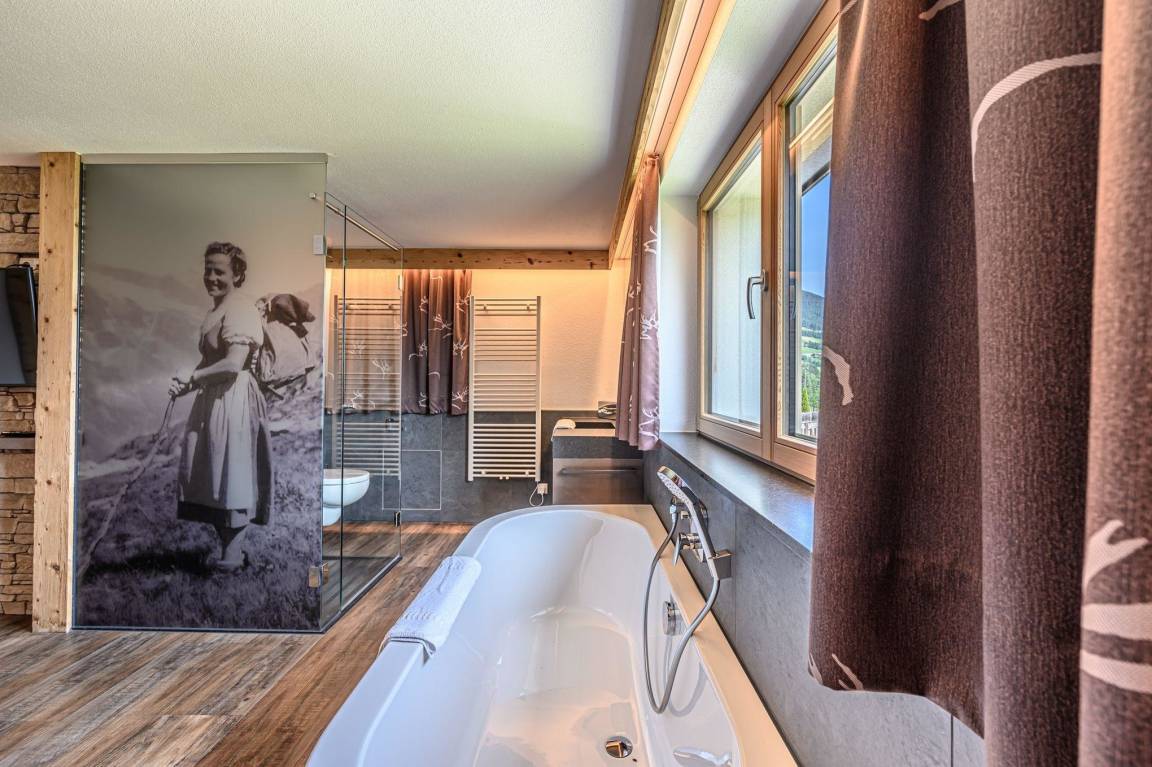 Sie bietet Ihnen einen Wohnbereich mit einer bequemen Couchgarnitur für kuschelige Stunden vor dem Kamin. Für Ihre Unterhaltung steht ein Fernseher für Sie bereit.