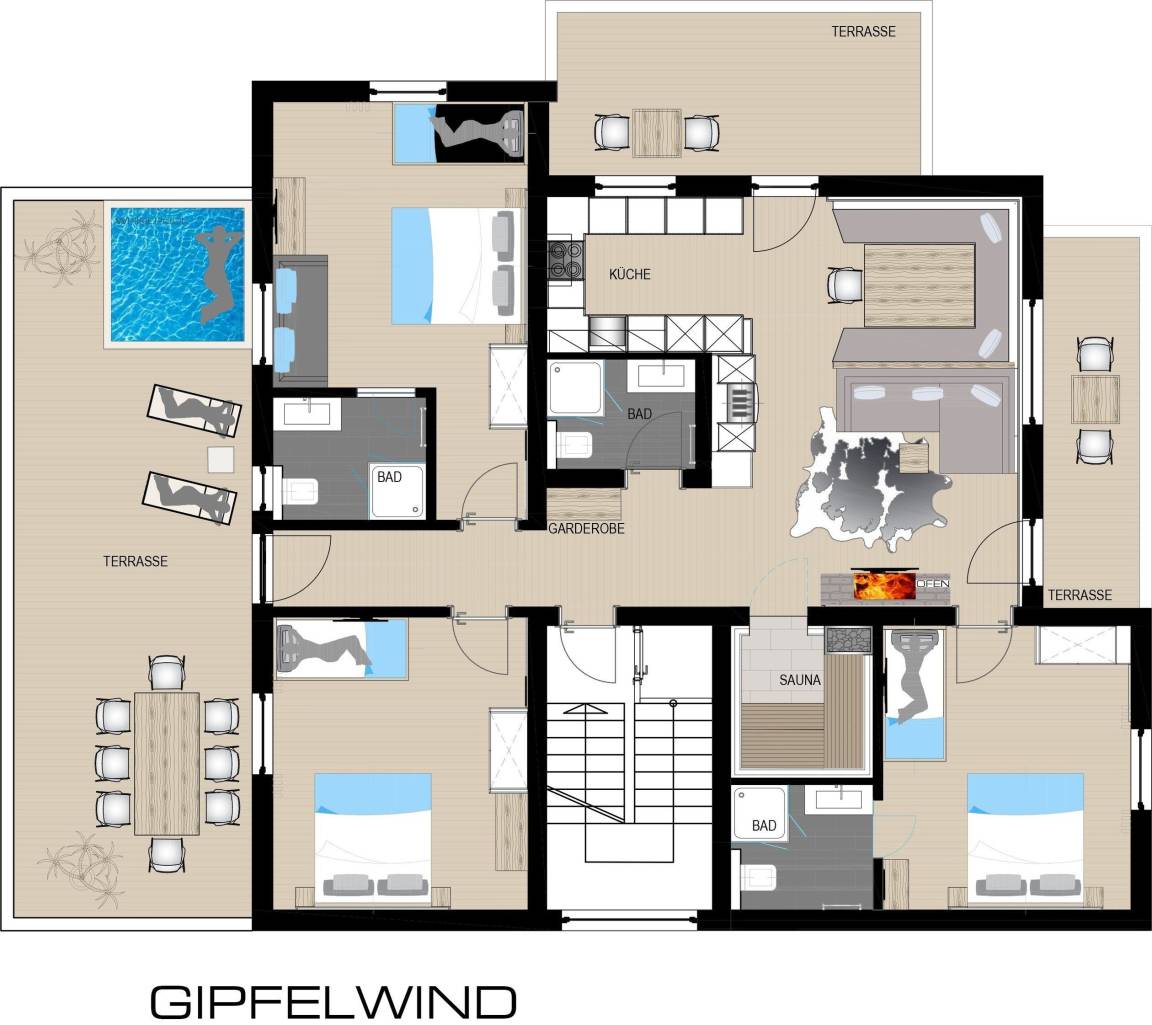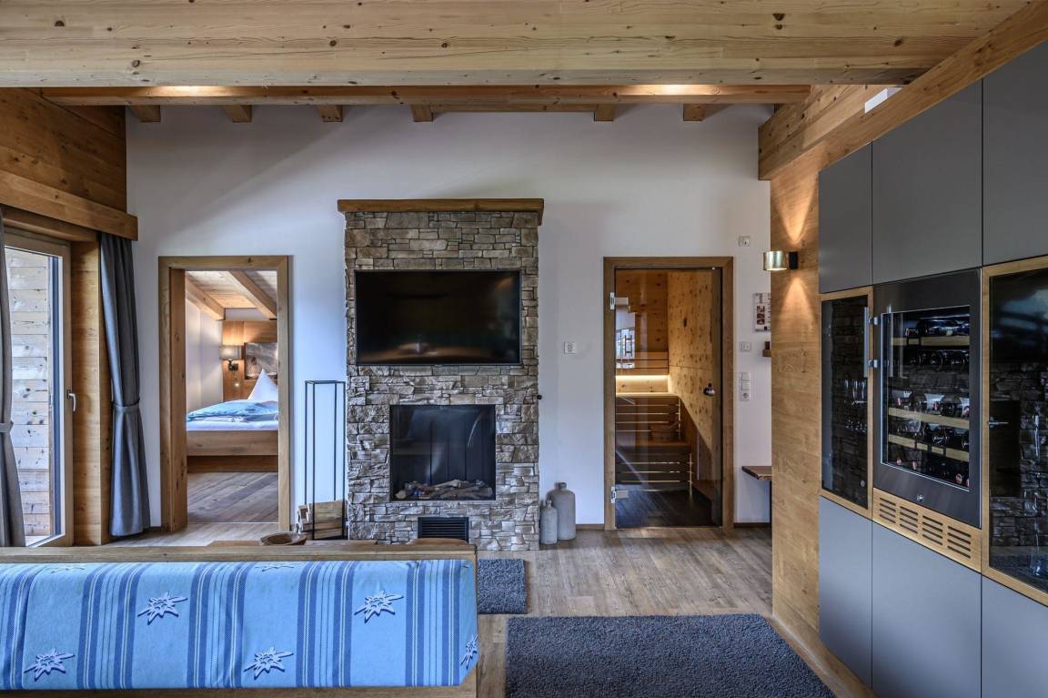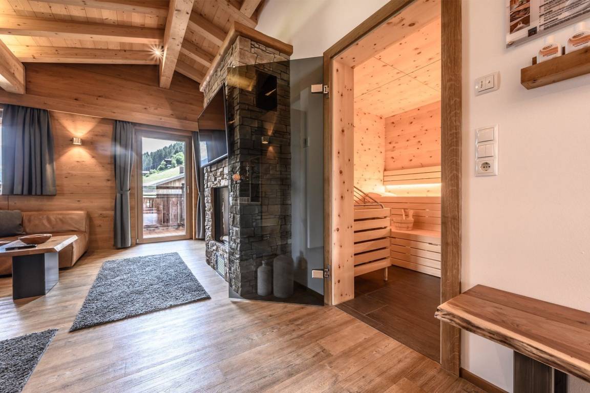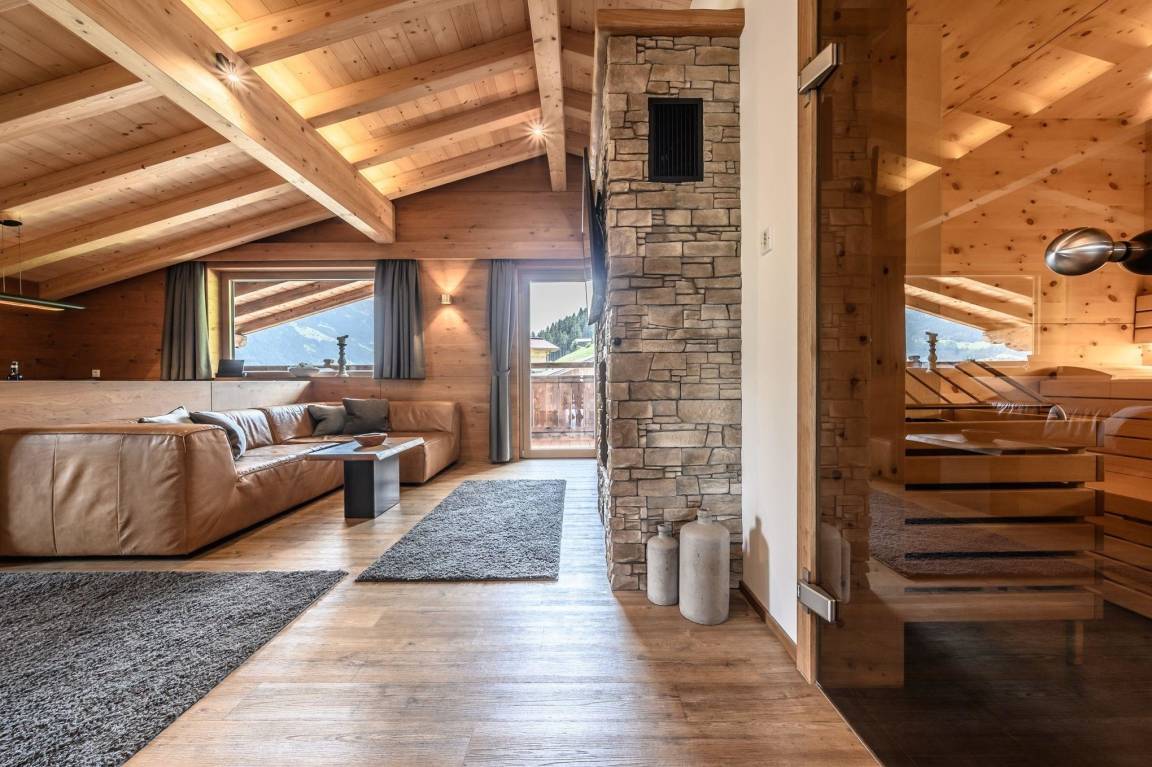 Es erwartet Sie ein luxuriöses Appartement mit hauseigener Sauna, Whirlpool sowie einem traumhaftem Blick auf die Berge im wunderschönen Zillertal.