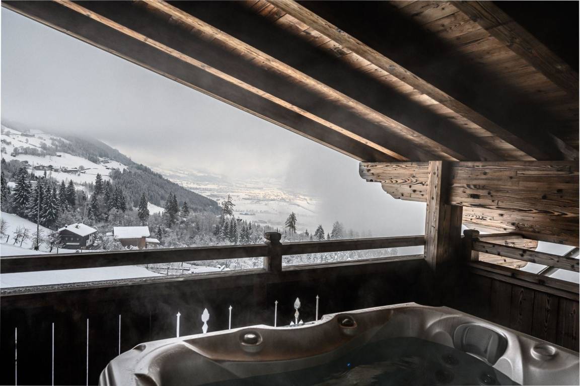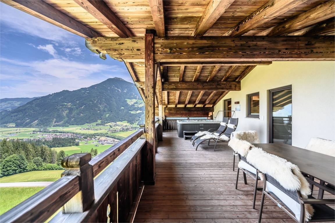 Entspannen Sie sich bei einem Glas Wein in unserem warmen Whirpool auf der eigenen Terrasse, nehmen Sie einen Sonnenbad auf den Liegen und genießen Sie dabei die herrliche Aussicht über die Zillertaler Bergwelt.