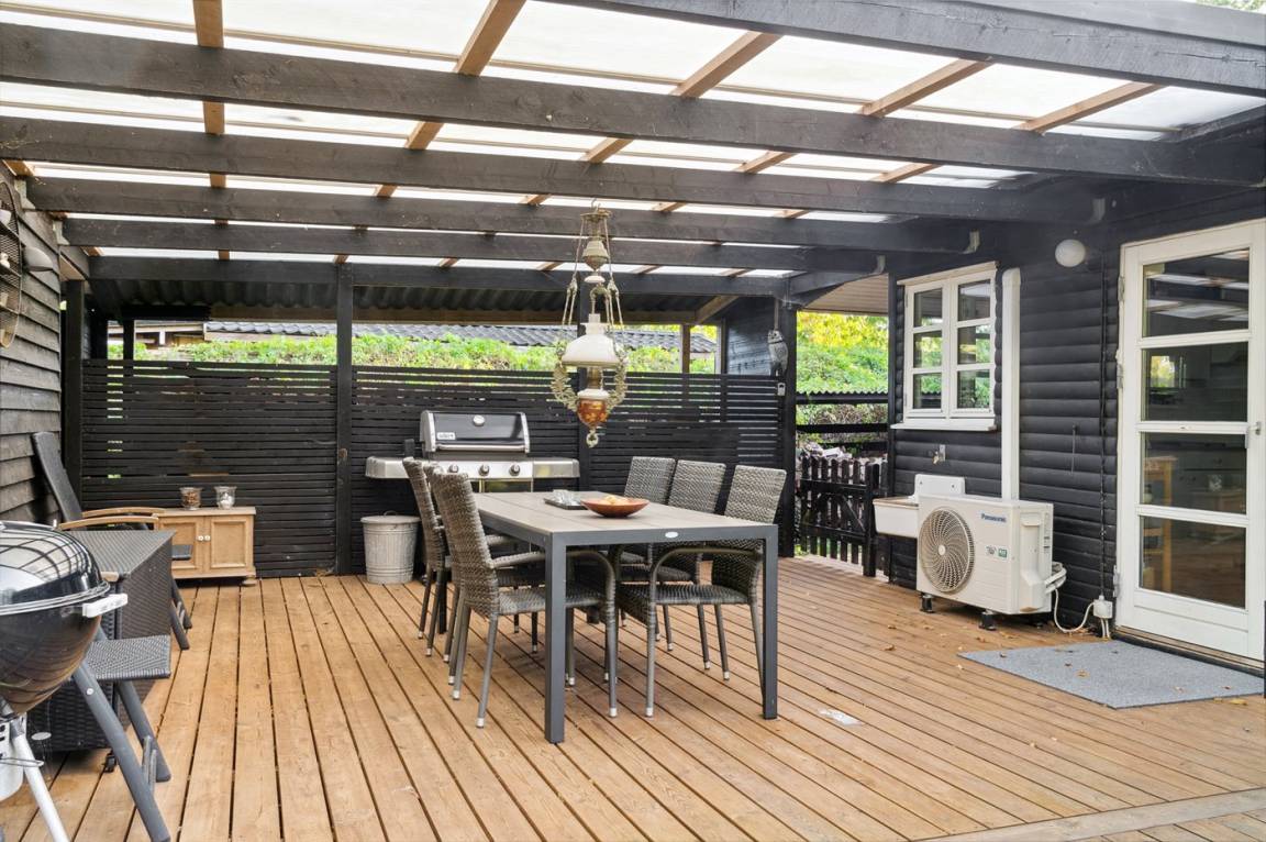 Dieses gemütliche Ferienhaus mit einem schönen Terrassenbereich lädt zum Entspannen und gemeinsame Stunden ein. Hier findest du sowohl eine große, offene Terrasse, auf der du den ganzen Tag über die Sonne genießen kannst, als auch einen schönen überdachten Bereich, der sich perfekt für lange Sommerabende eignet – unabhängig vom Wetter. Es ist der ideale Ort für Grillabende und zum gemütlichen Beisammensein mit Familie und Freunden in ruhiger Umgebung.