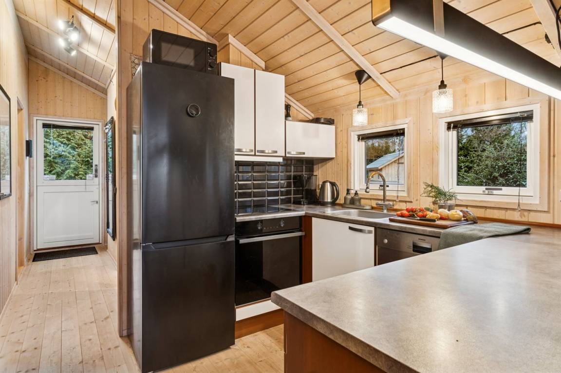 KücheDie Küche ist mit Kühlschrank ausgestattet. Außerdem gibt es 4 Induktions-Kochzonen, Umluftofen, Mikrowelle sowie Geschirrspüler.