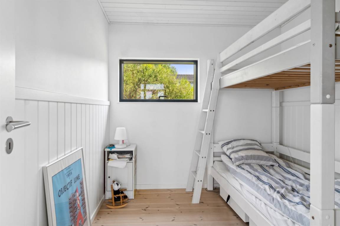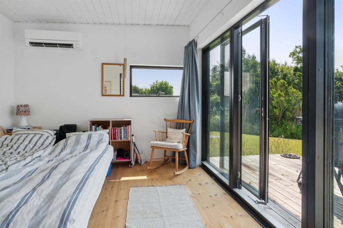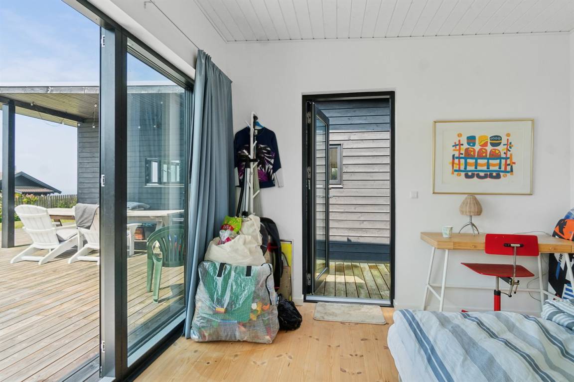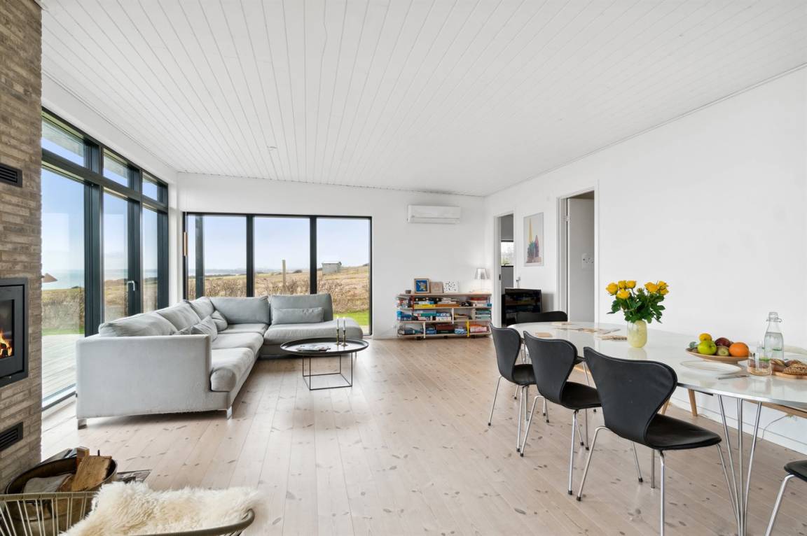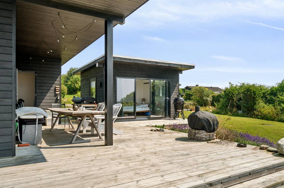Nur 100 Meter von einem schönen und kinderfreundlichen Sandstrand entfernt und mit Blick auf das Meer und offene Felder findet man dieses schöne Ferienhaus. Das Haus liegt in einem kleinen und ruhigen Ferienhausgebiet am Ende einer Sackgasse und direkt zu offenen Feldern hin.
