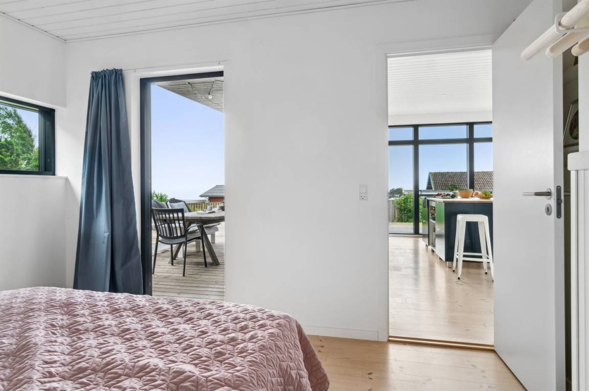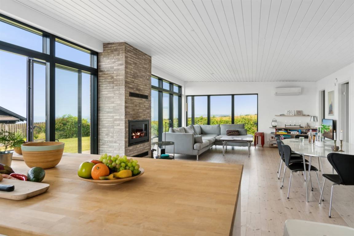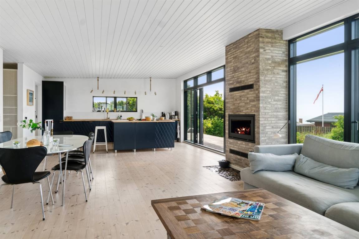 Vom Haus und von der Terrasse aus hat man Aussicht auf die Jammerland Bucht mit Asnæs und Kalundborg im Hintergrund. Dies gilt auch für die Außensauna, von der aus man die herrlichste Aussicht genießen kann. Das Haus erscheint hell und freundlich aufgrund des großen Lichteinfalls durch die vielen großen Fensterfronten.