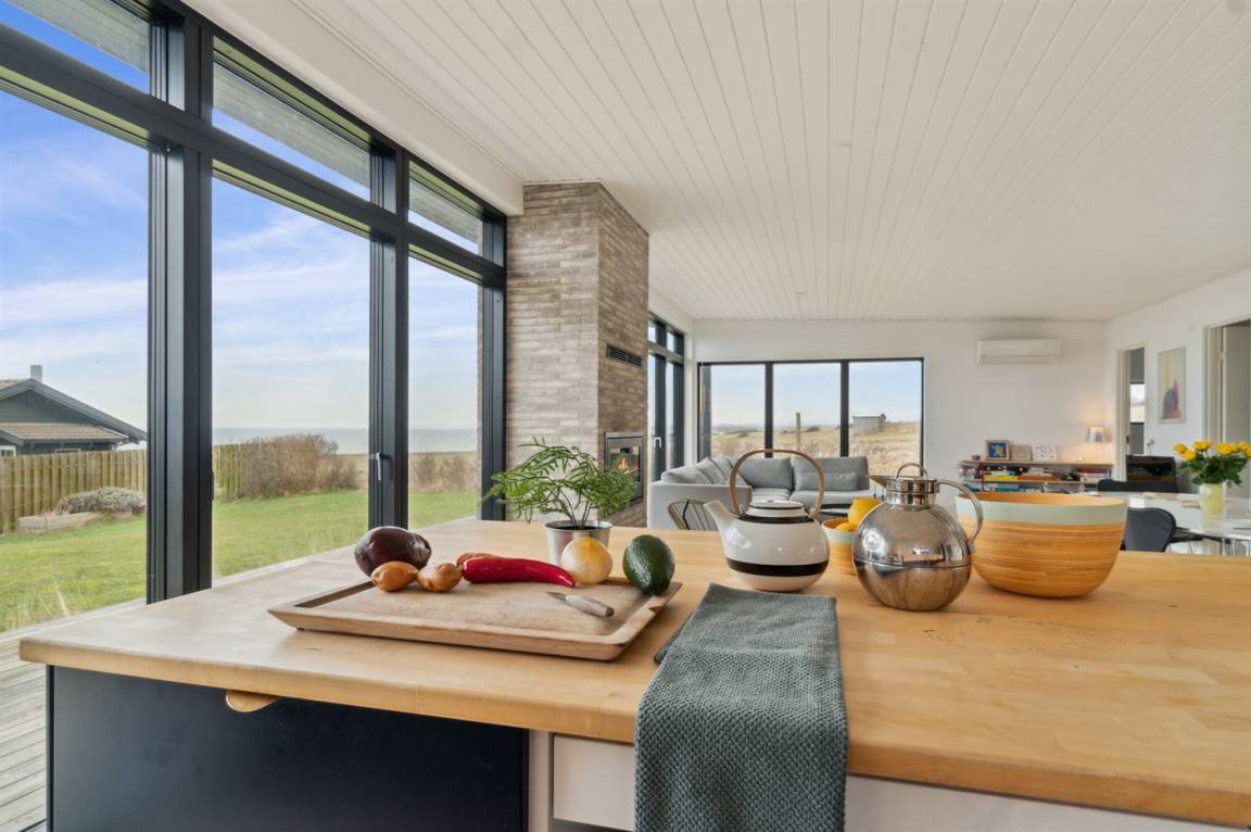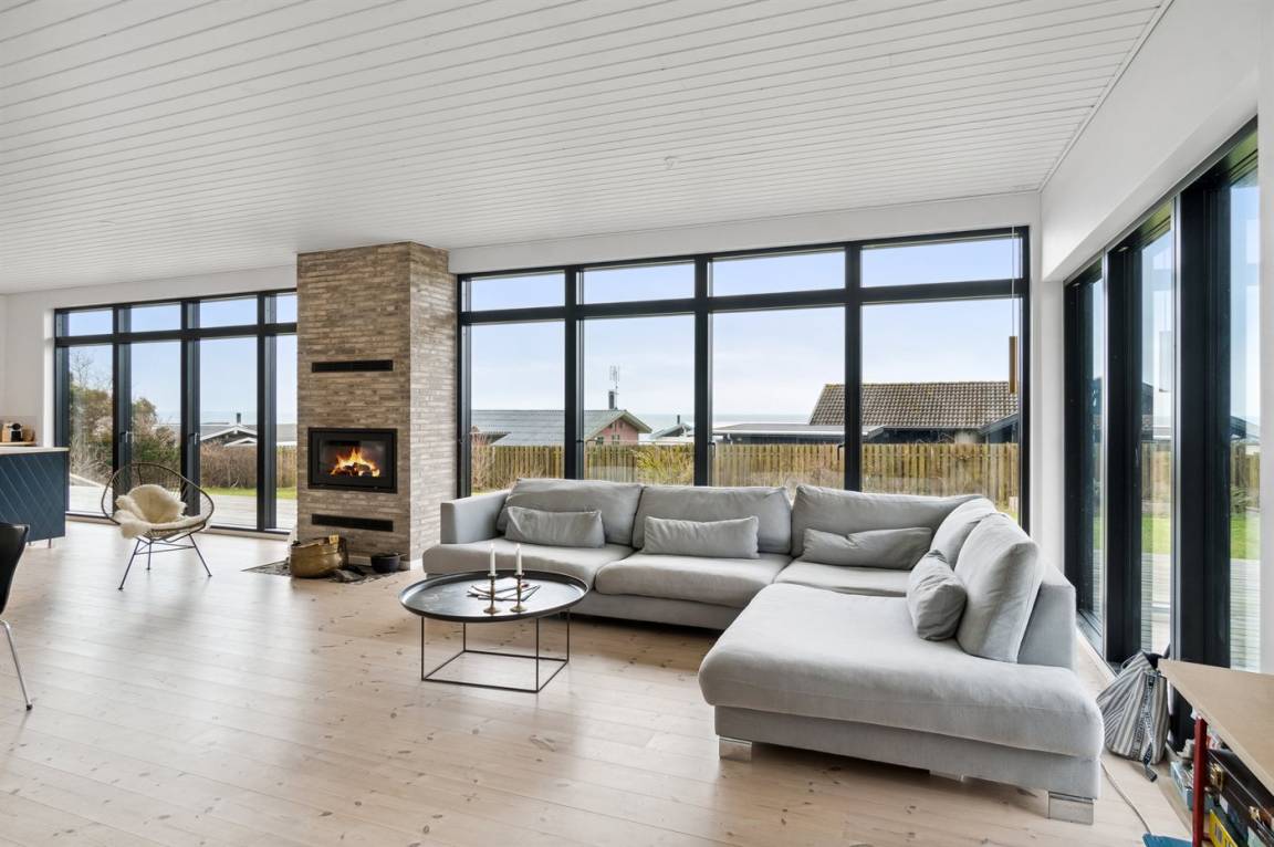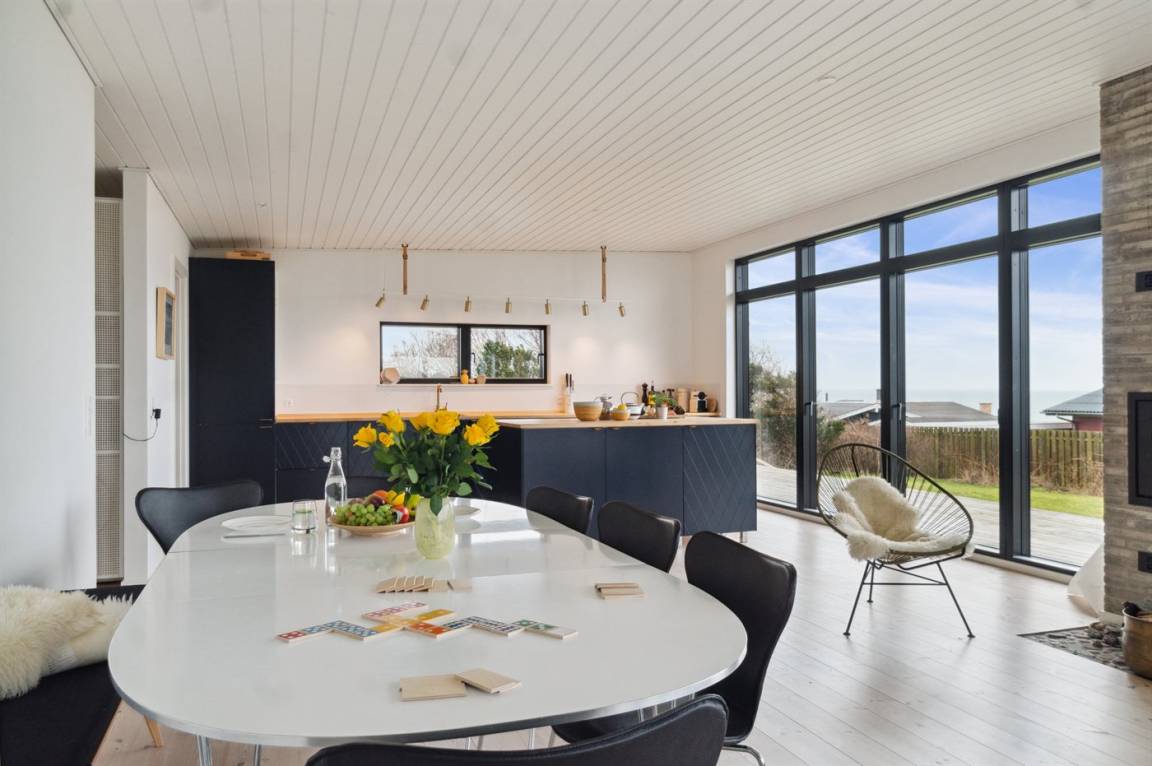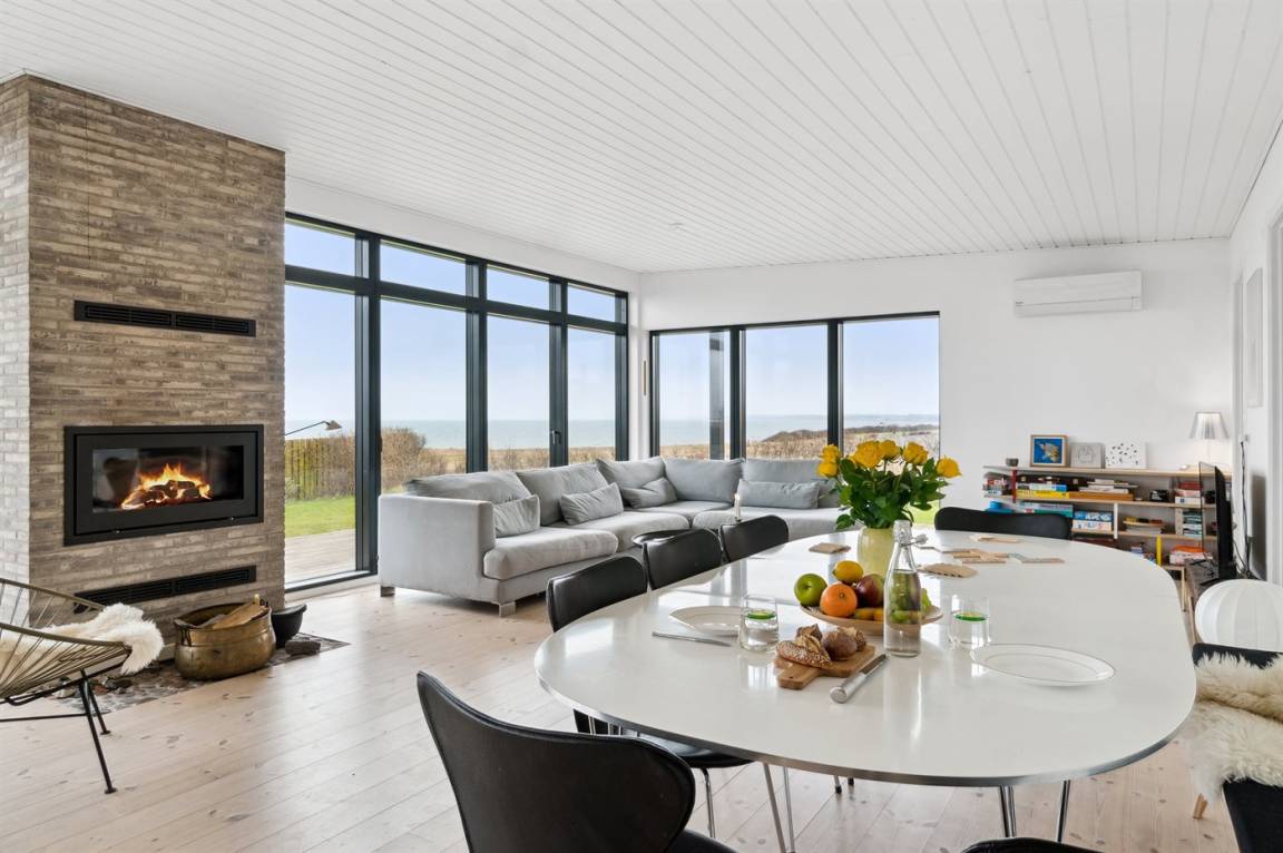 Vom Haus und von der Terrasse aus hat man Aussicht auf die Jammerland Bucht mit Asnæs und Kalundborg im Hintergrund. Dies gilt auch für die Außensauna, von der aus man die herrlichste Aussicht genießen kann. Das Haus erscheint hell und freundlich aufgrund des großen Lichteinfalls durch die vielen großen Fensterfronten.