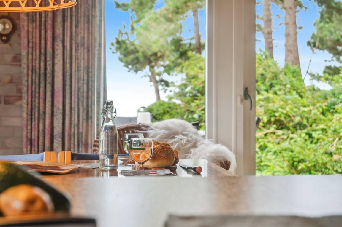 Dieses schöne Ferienhaus liegt in der ersten Dünenreihe auf dem höchsten Punkt eines kleinen Hügels und es gibt daher eine formidable Aussicht auf das Meer - sowohl vom Haus als auch vom Grundstück aus.
