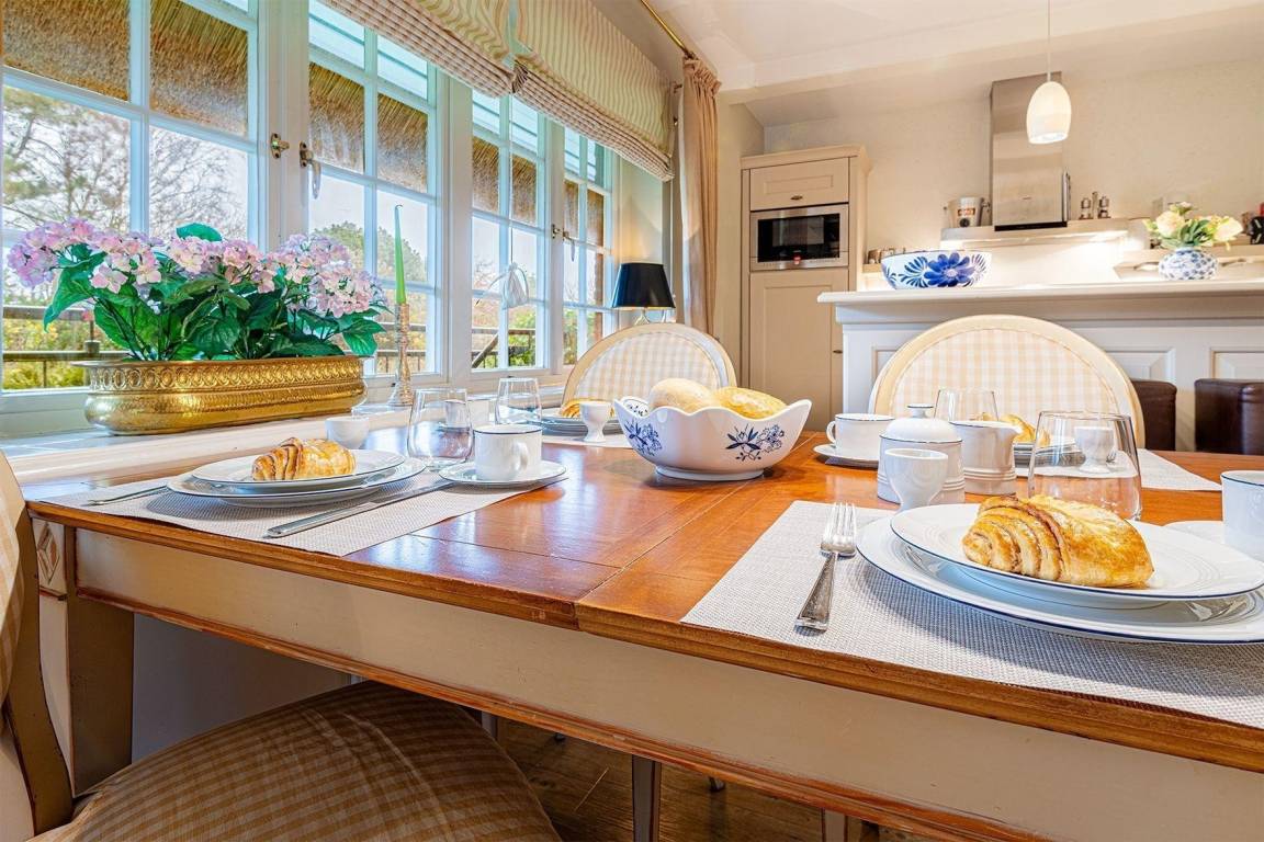 Das exklusive Reetdach-Ferienhaus in Kampen bietet Platz für bis zu 6 Personen, umgeben von Naturschönheit, und in Fußnähe zu Stränden und renommierten Restaurants – ideal für unvergessliche Urlaube.
