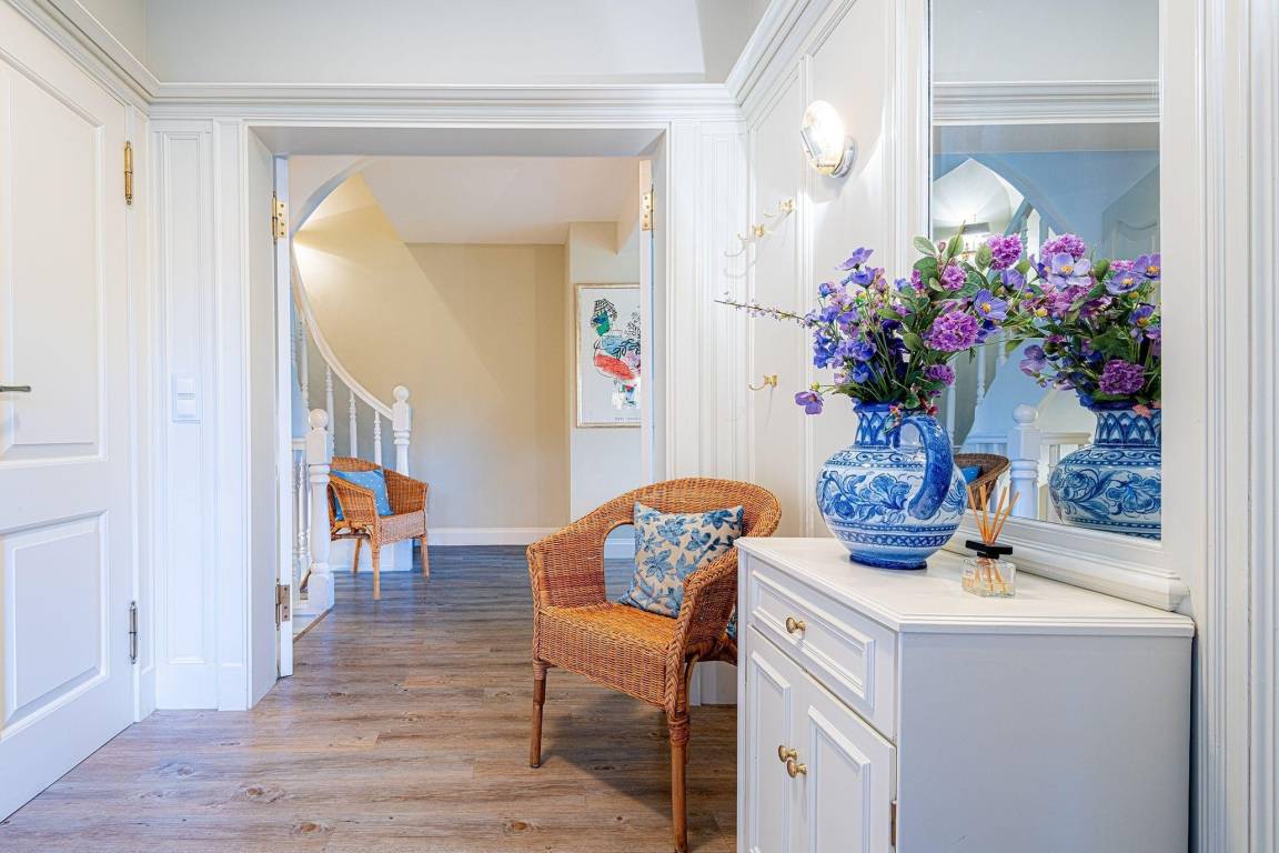 Das exklusive Ferienhaus Cäcilienhof West in Kampen bietet einen charmanten Außenbereich, der ideal für entspanntes Verweilen in der Natur ist. Der nach Südwesten ausgerichtete Garten lädt dazu ein, die frische Nordseeluft zu genießen und entspannte Stunden im Freien zu verbringen. Die möblierte Terrasse ermöglicht gemütliche Mahlzeiten im Freien und bietet einen direkten Zugang zum weitläufigen Garten, der auf einem großen privaten Grundstück liegt und einen malerischen Blick auf die Heide bietet. Gäste können die Ruhe und Idylle der Umgebung erleben, während die pulsierenden Strände und das Zentrum von Kampen mit renommierten Restaurants und Geschäften in wenigen Minuten zu Fuß erreichbar sind. Ob für Familien oder Paare – dieser Außenbereich verspricht eine erholsame Auszeit inmitten der Natur und sorgt für unvergessliche Momente während des Aufenthalts auf Sylt.
