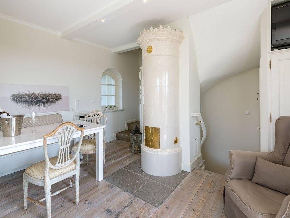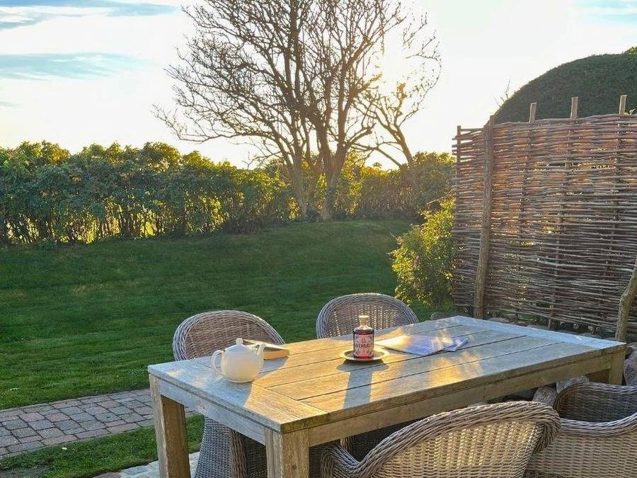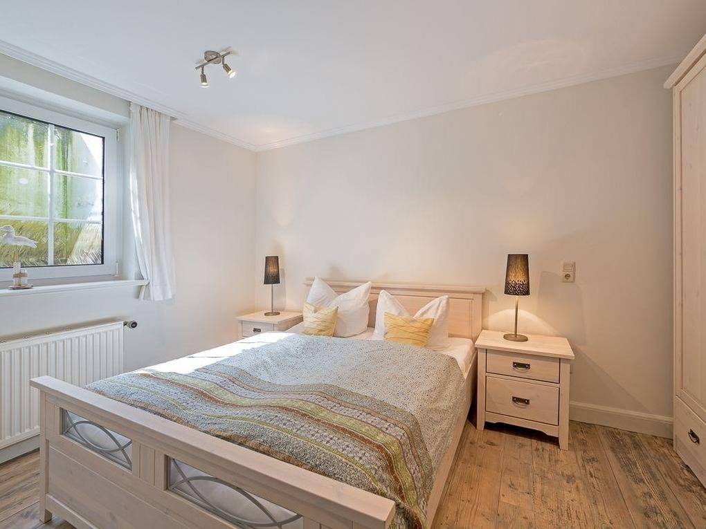 Über die Südterrasse gelangen Sie durch die typisch friesische Klöntür direkt in den gemütlich und offen gestalteten Wohn-Essbereich mit großen Fensterfront nach Süden. Die voll ausgestatteter Küchenzeile nebst Essplatz für Vier, Kachelofen und Sofa samt TV laden zum Verweilen ein. Im Obergeschoss erwartet Sie ein Doppelschlafzimmer mit raffinierten Einbauschränken und einem Wannenbad en suite. Von hier erfreut Sie der Ausblick gen Süden vorbei am Kampener Leuchtturm "Langer Christian" bis nach Wenningstedt. Das Untergeschoss hält ein weiteres Doppelschlafzimmer mit Tageslicht, TV und großem Kleiderschrank, sowie ein Duschbad samt Waschtrockner bereit. Das gesamte Quartier ist mit Natursteinböden und Böden in Holzoptik ausgestattet. Ein durch und durch gemütliches Heim für entspannte Urlaube.