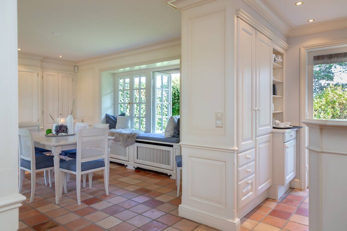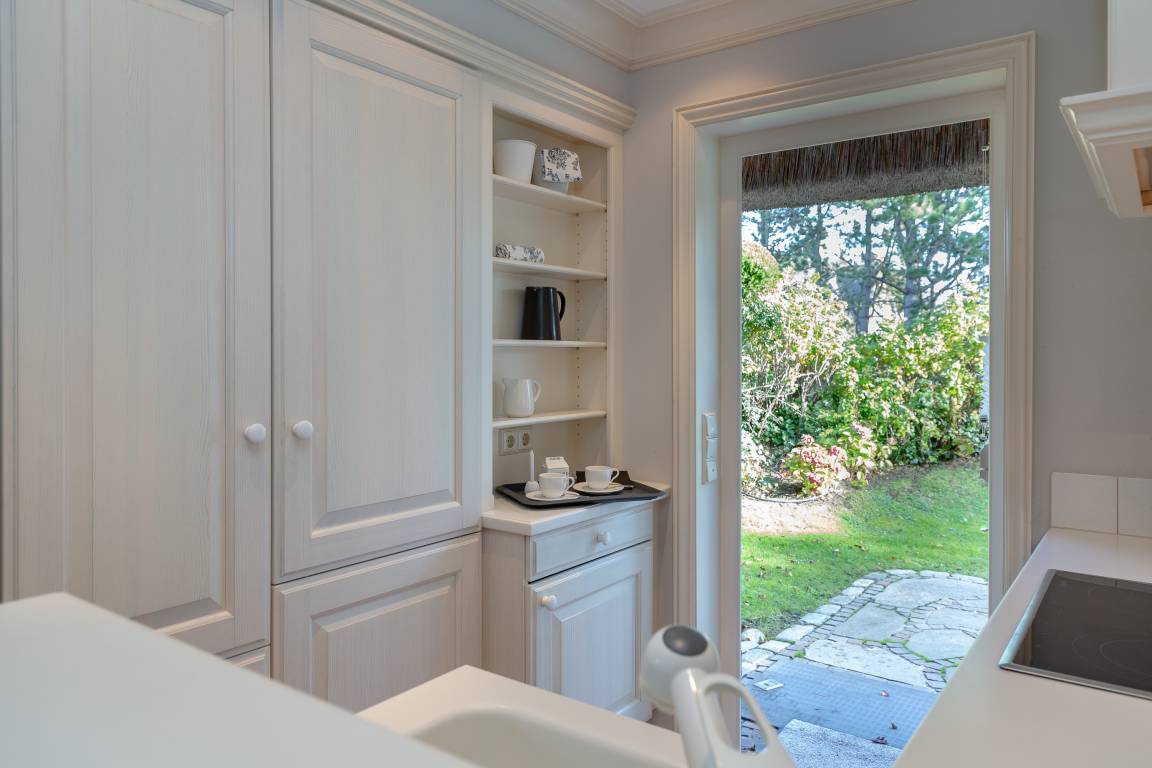 Das Ferienhaus Hideaway für bis zu 6 Personen liegt in ruhiger und schöner Wattlage von Kampen, ein schönes Hausteil mit dem Charakter eines Einzelhaus und idyllischen Garten. Durch den Flur mit Gäste WC und Garderobe geht es in den gemütlichen Wohnbereich mit Kamin und Zugang zur Süd - West Terrasse sowie offener Küche mit angrenzendem lichtdurchfluteten Esszimmer mit hochwertigen Holzeinbauten sowie Blick in den wunderbaren Garten. Im Obergeschoss befinden sich zwei separate Schlafzimmer jeweils mit behaglichen Holzeinbauten sowie einmal mit Duschbad on suite und einem separaten Wannenduschbad. Im Untergeschoss befinden sich zwei weitere separate Schlafzimmer mit Doppelbett sowie ein geräumiges Duschbad und ein separater Hauswirtschaftsraum mit Waschmaschine und Wäschetrockner. Das Haus verfügt über zwei Pkw - Stellplätze sowie ein separates Gartenhaus für Ihre Fahrräder. Ein Wohlfühlurlaub im Haus Hideawax in Kampen ist garantiert. Wir freuen uns auf Sie.