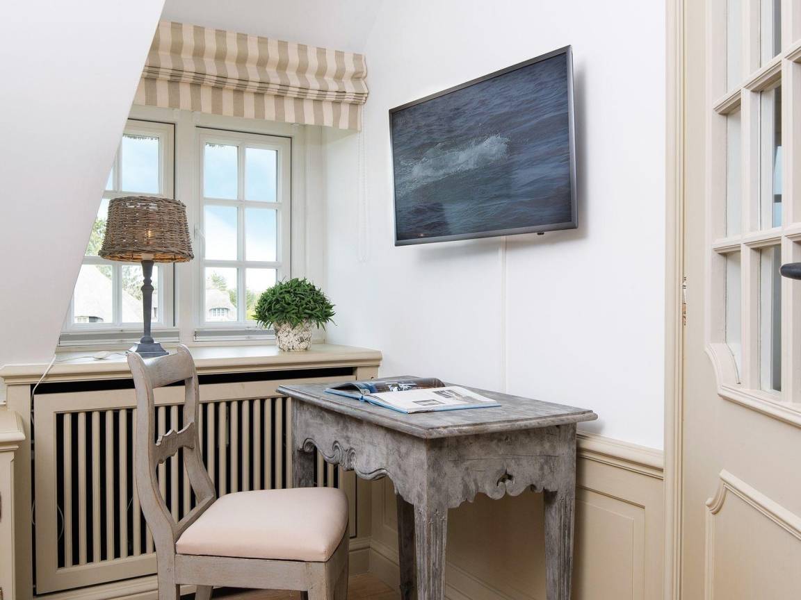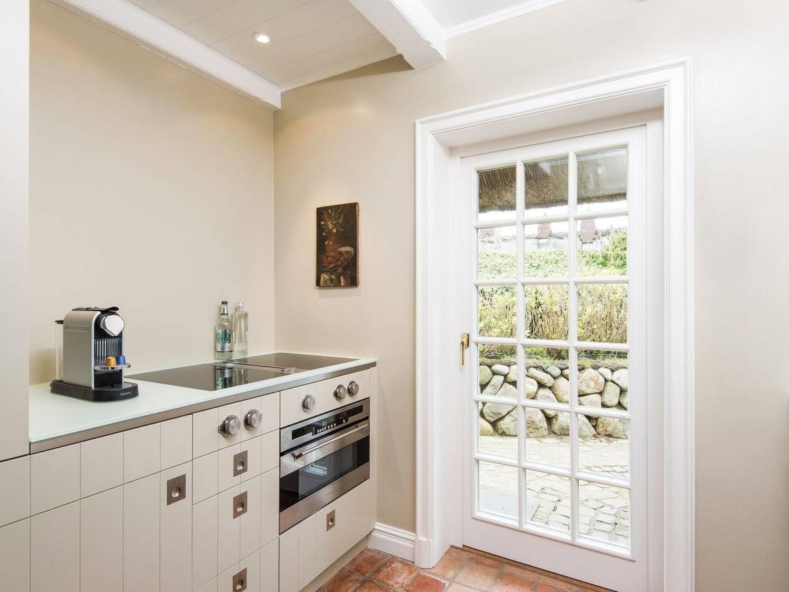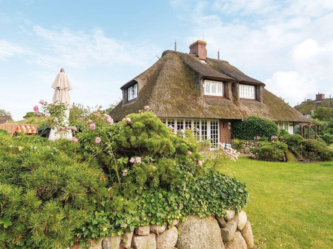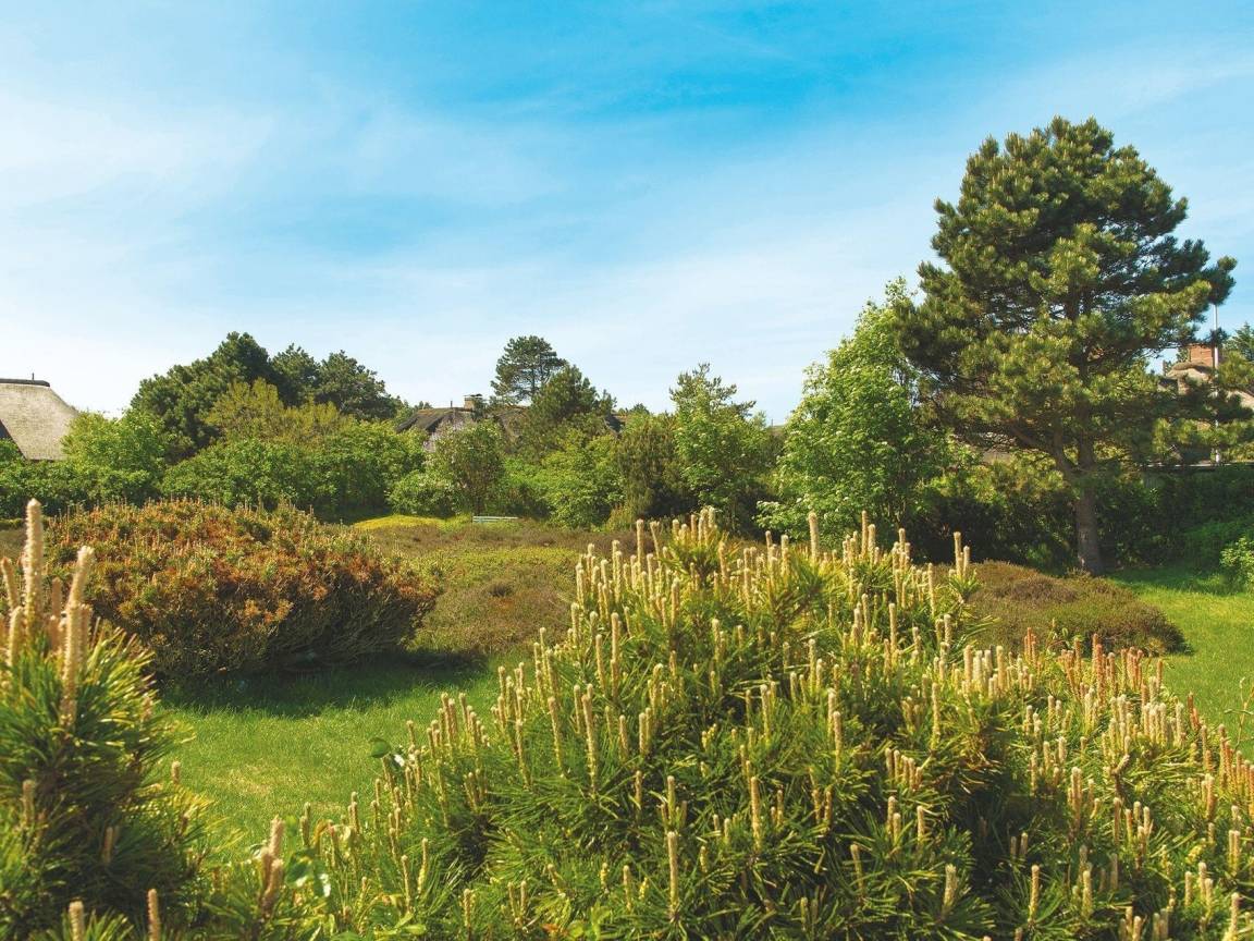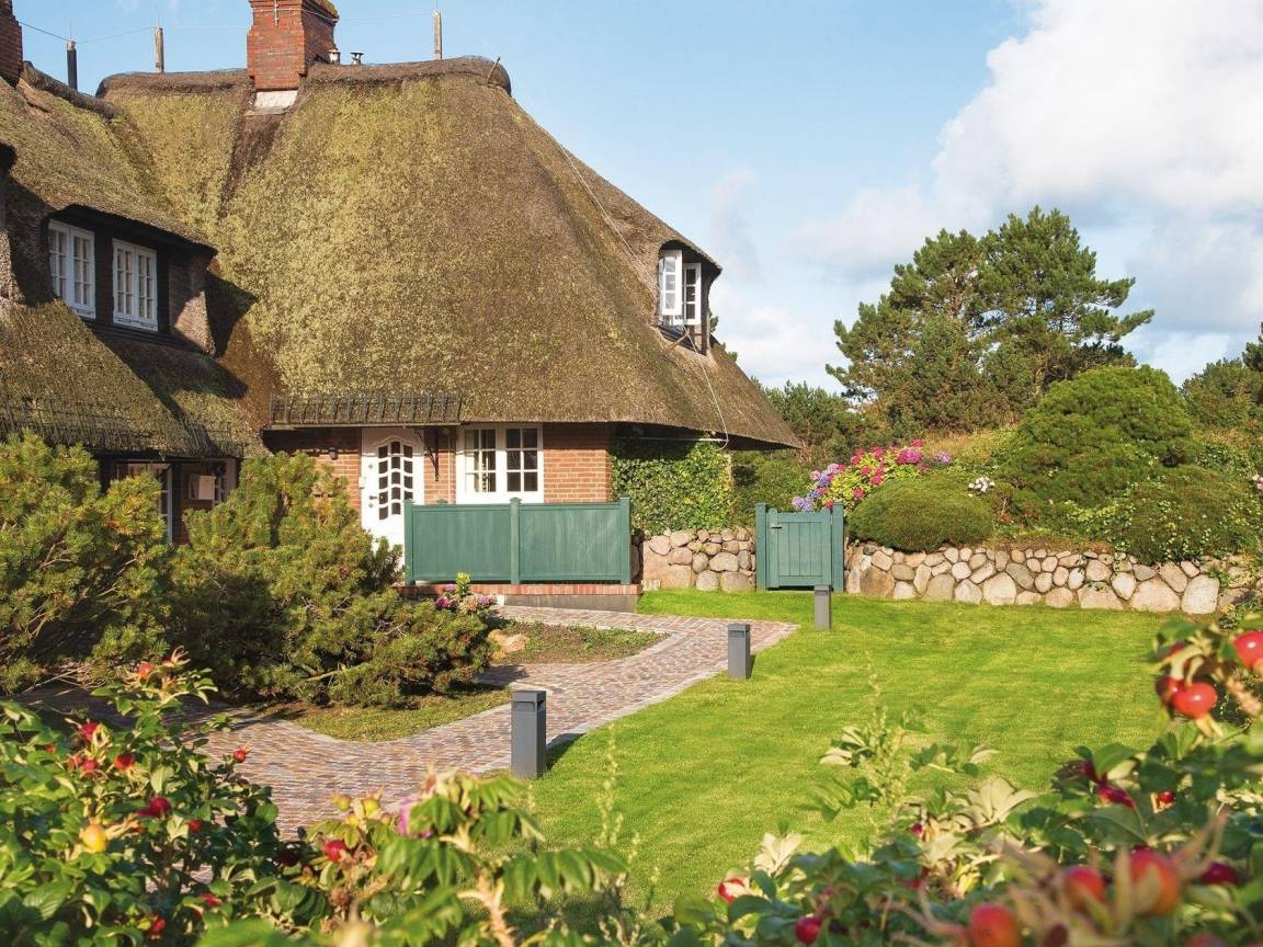 In ruhiger Lage im Hans-Hansen-Wai finden Sie den Bettinenhof. Ihr Hausteil West liegt eingebettet in einen wunderbaren Heidegarten mit Westterrasse und gemütlicher Sitzecke für ein sonniges Frühstück. Im Erdgeschoss finden Sie das Wohnzimmer ganz in rot, das mit hochwertigen Vertäfelungen, Einbauten und einem Kamin Wohlfühl-Atmosphäre verbreitet. Eine moderne zweizeilige Küche mit Zugang zum Garten ist ebenfalls auf dieser Ebene. Im Obergeschoss erwartet Sie dann ein Doppelschlafzimmer mit Rundumblick in den großen Garten, sowie ein Gäste WC und ein Wannen-Duschbad unter der Schräge. Im Untergeschoss gibt es ein weiteres Doppelschlafzimmer, ein Zimmer mit 2 Einzelbetten und ein großes Duschbad. Das gesamte Hausteil besticht durch seine wunderbaren, wohldurchdachten Tischlereinbauten und ist mit Fliesen im Eingang und Parkett im Rest des Hauses ausgelegt.